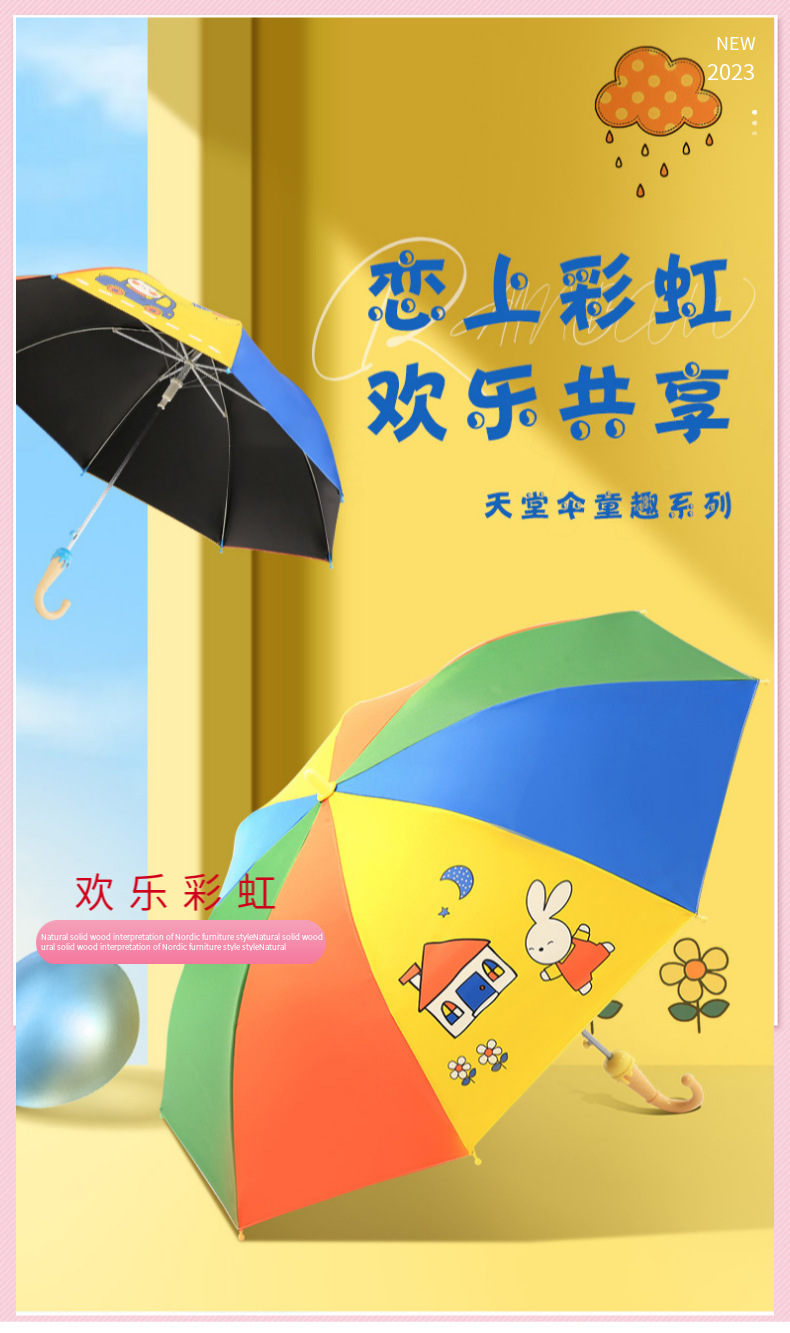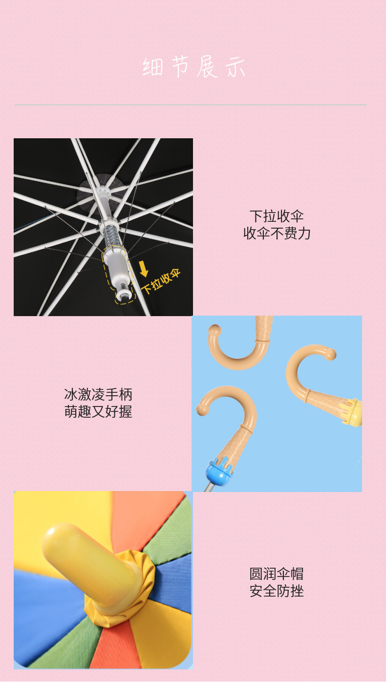정품 파라다이스 우산 아이스크림 손잡이 선스크린 레인보우 우산 초등학생을위한 스트레이트 핸들 써니 비 이중 목적 만화 어린이 우산스토어 가기