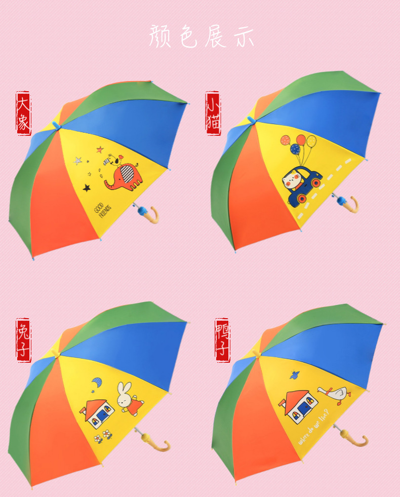 정품 파라다이스 우산 아이스크림 손잡이 선스크린 레인보우 우산 초등학생을위한 스트레이트 핸들 써니 비 이중 목적 만화 어린이 우산