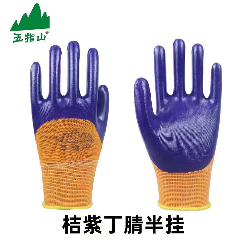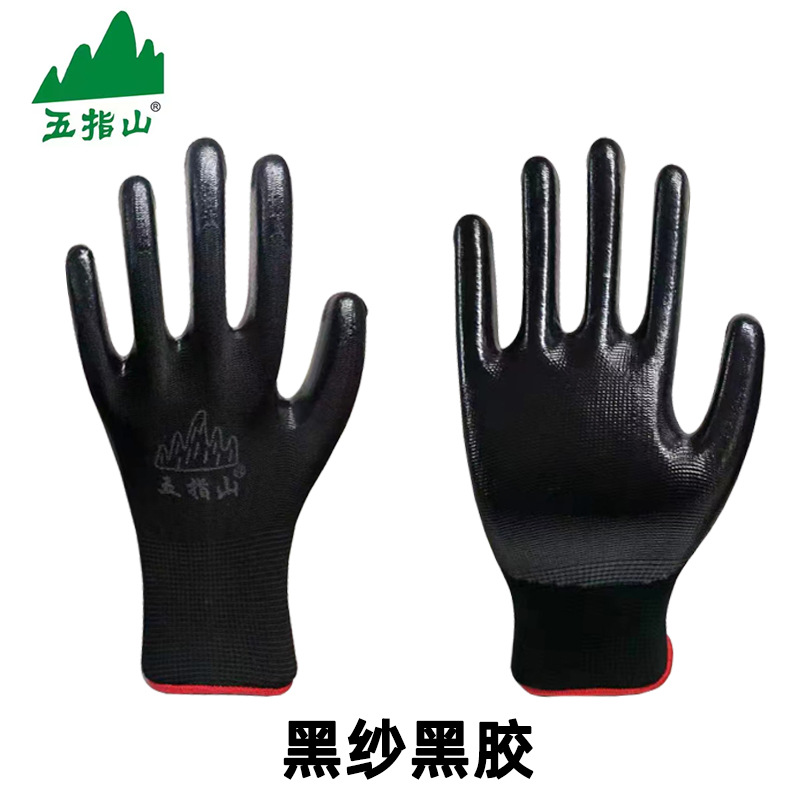 Wuzhishan 니트릴 노동 보호 장갑 내유성 미끄럼 방지 컷 방지 손바닥 디핑 장갑 도매스토어 가기