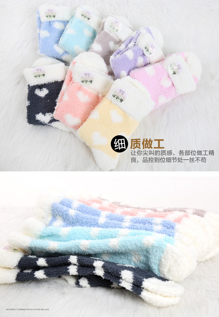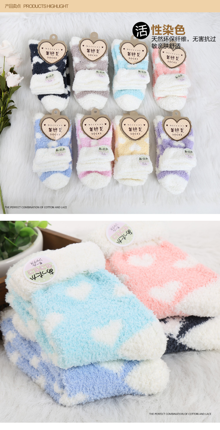 가을, 겨울 산호 벨벳 양말 하트 모양의 하프 벨벳 여성 양말 땀 흡수 통기성 바닥 양말 도매 두꺼운 따뜻한 수면 양말스토어 가기