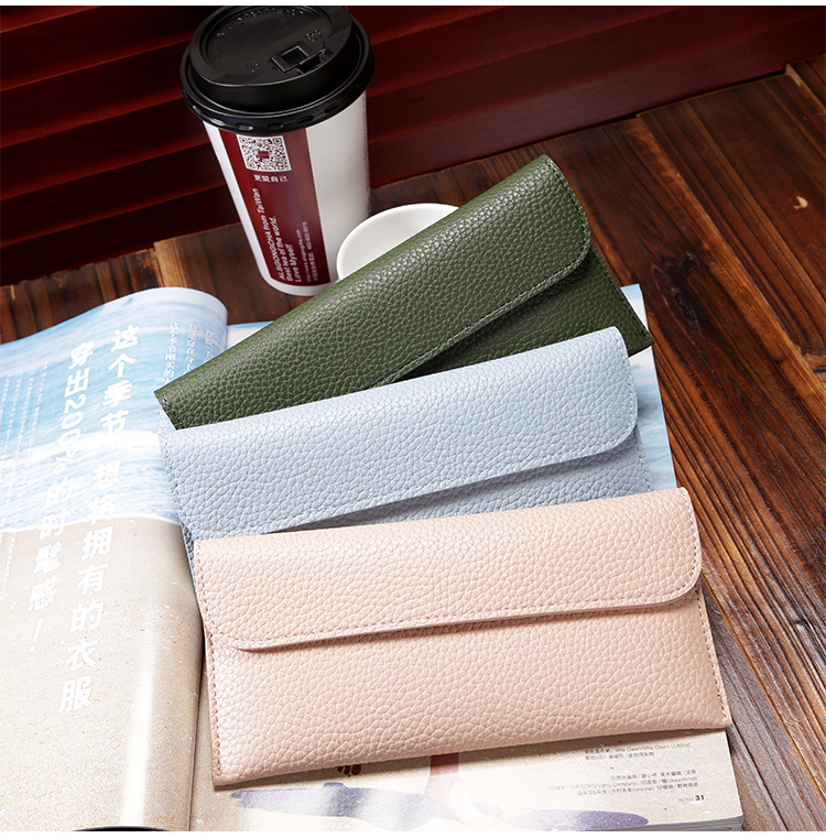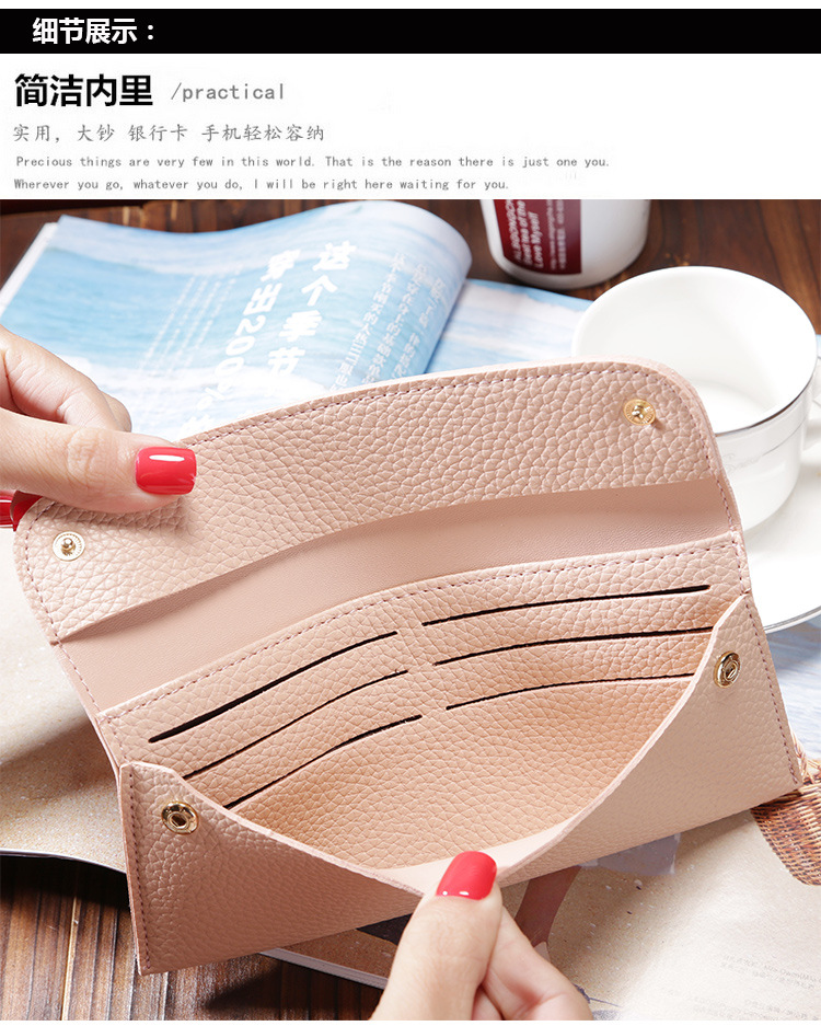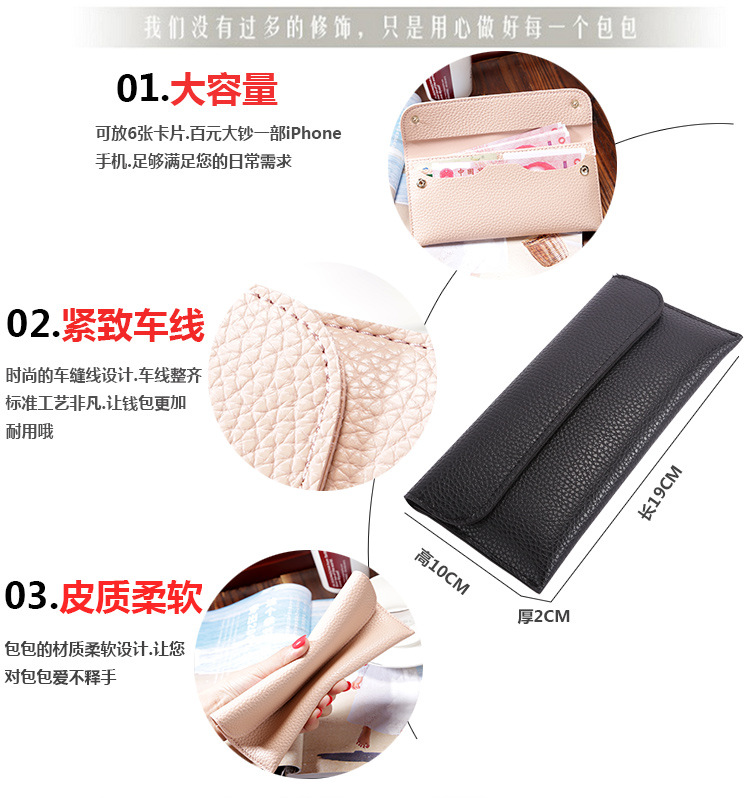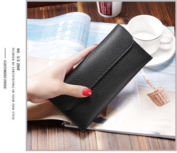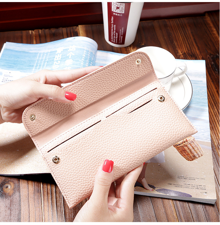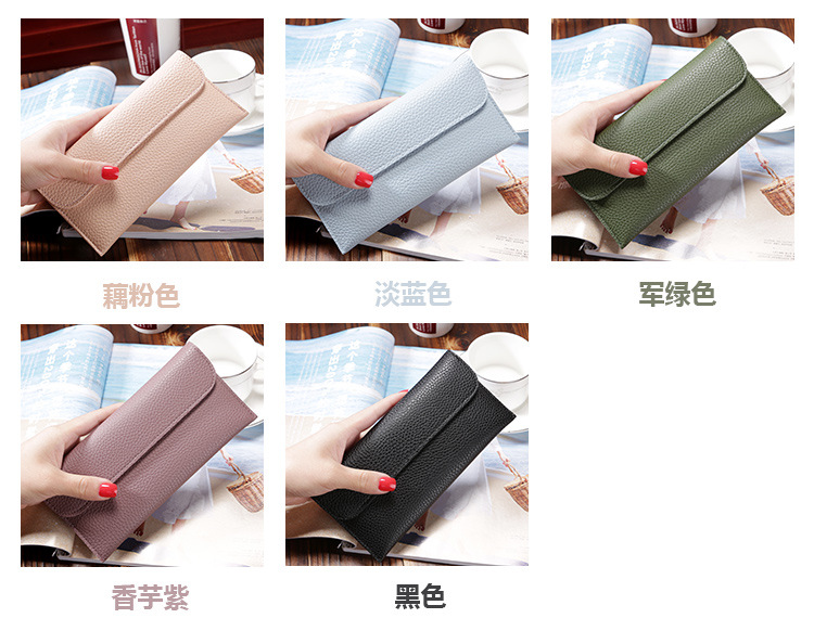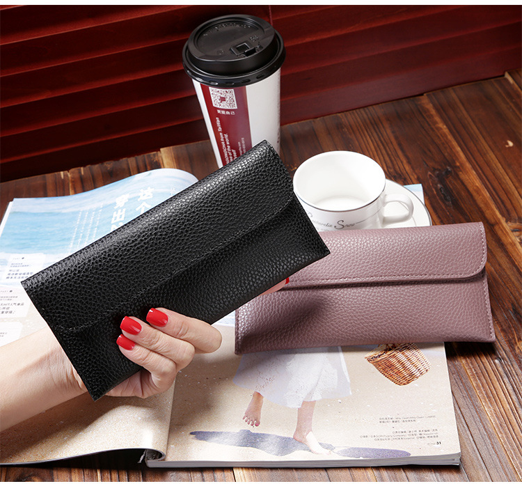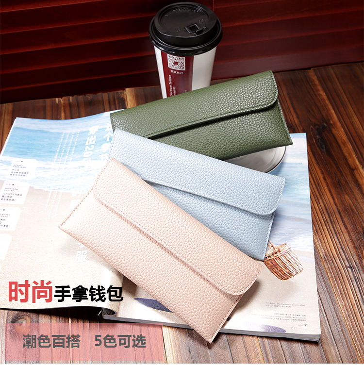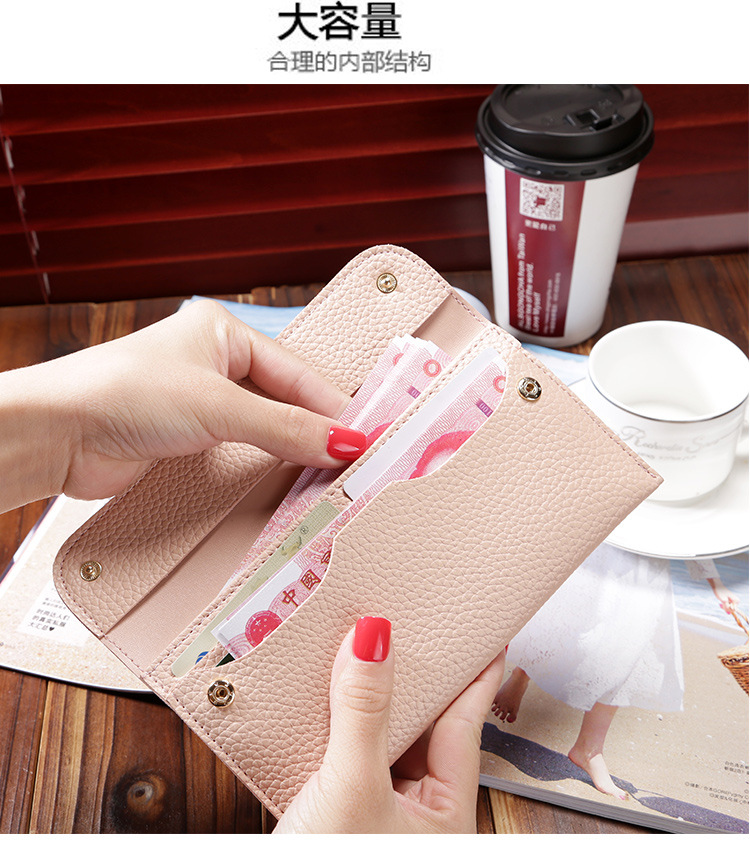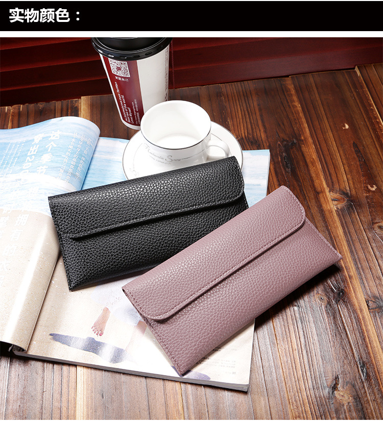 现货批发新款日韩版女士钱包长款大容量纯色荔枝纹手机包钱包女包