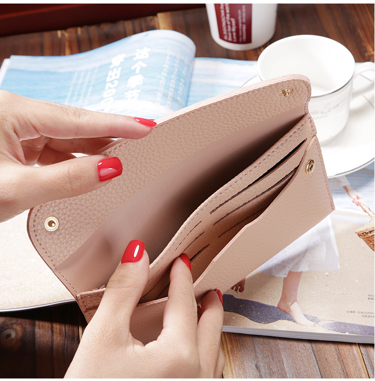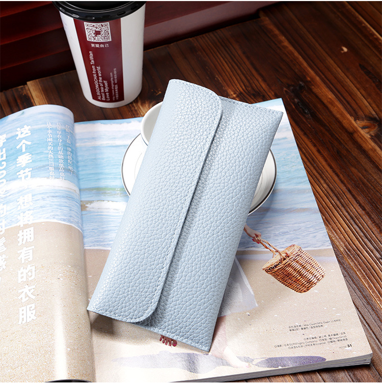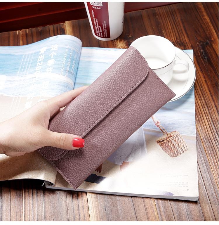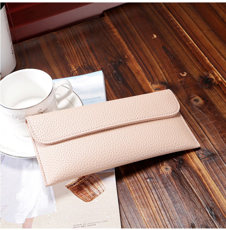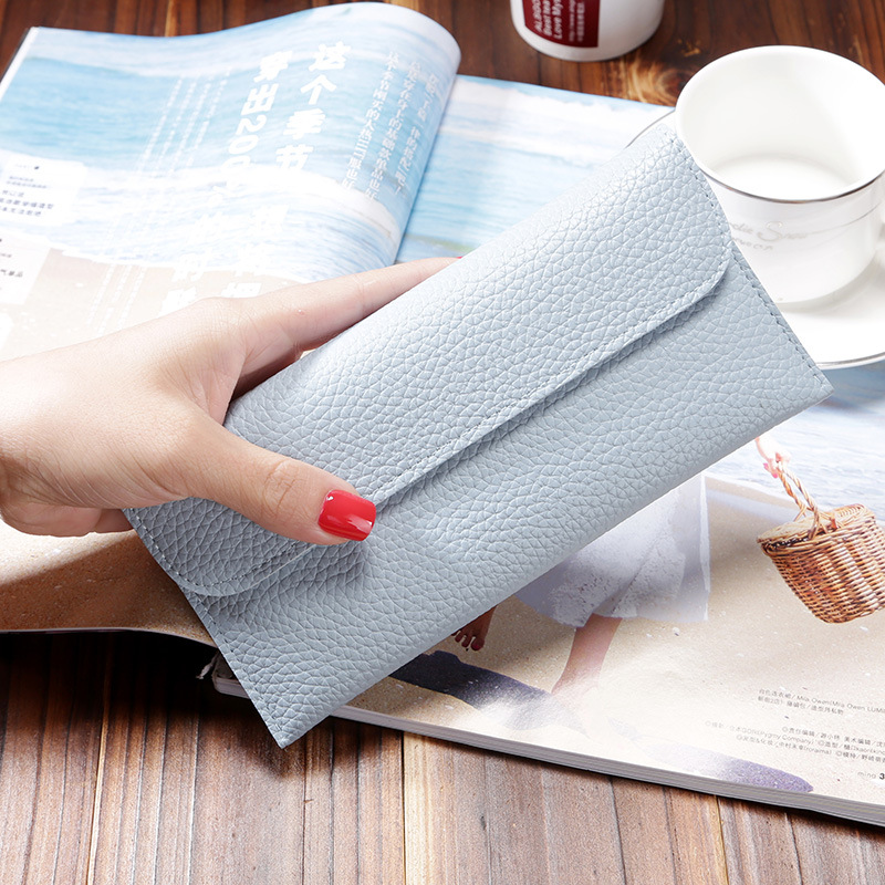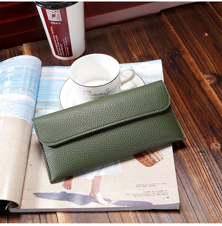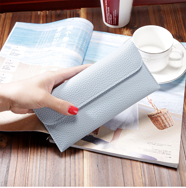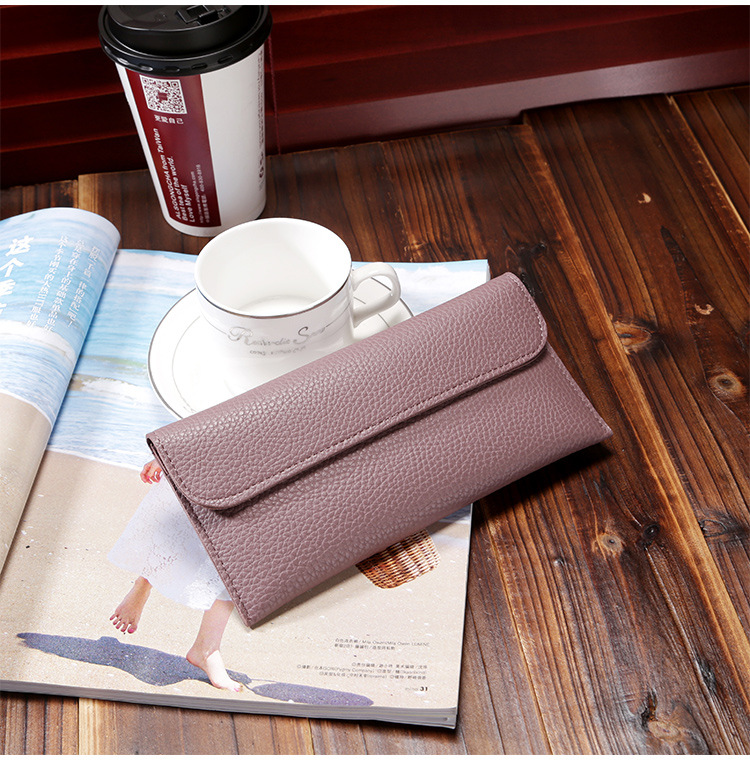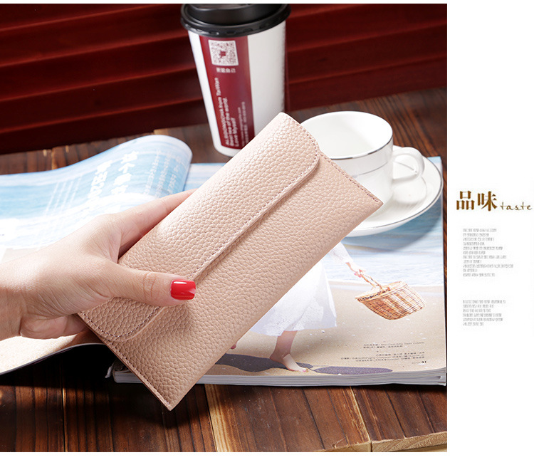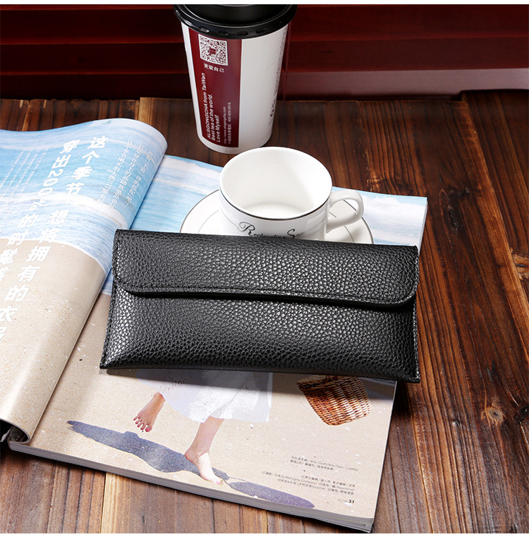现货批发新款日韩版女士钱包长款大容量纯色荔枝纹手机包钱包女包