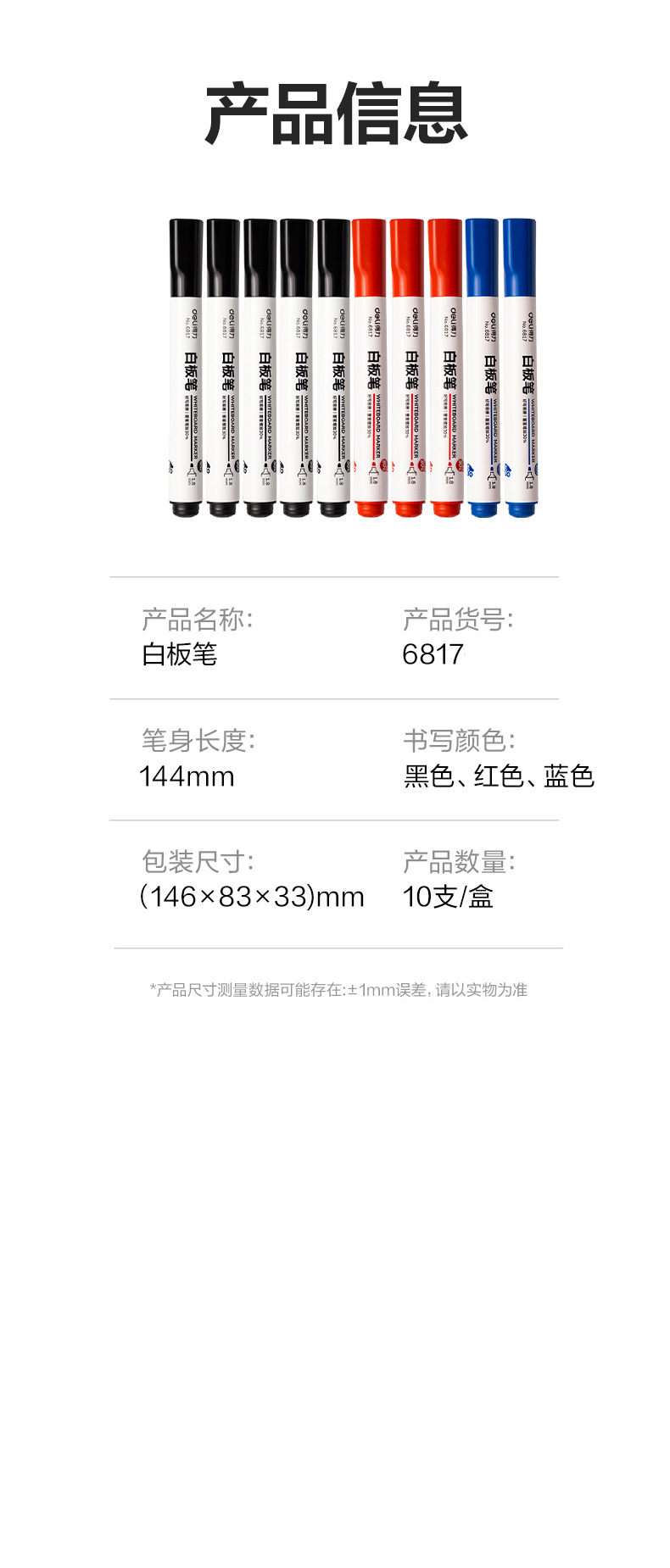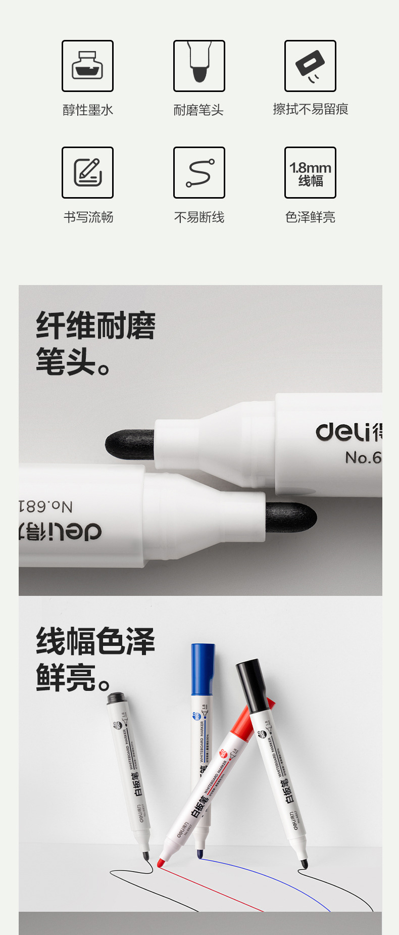 델리 6817 화이트 보드 펜 큰 머리 펜 지울 수있는 레드 블랙 블루 교사스토어 가기