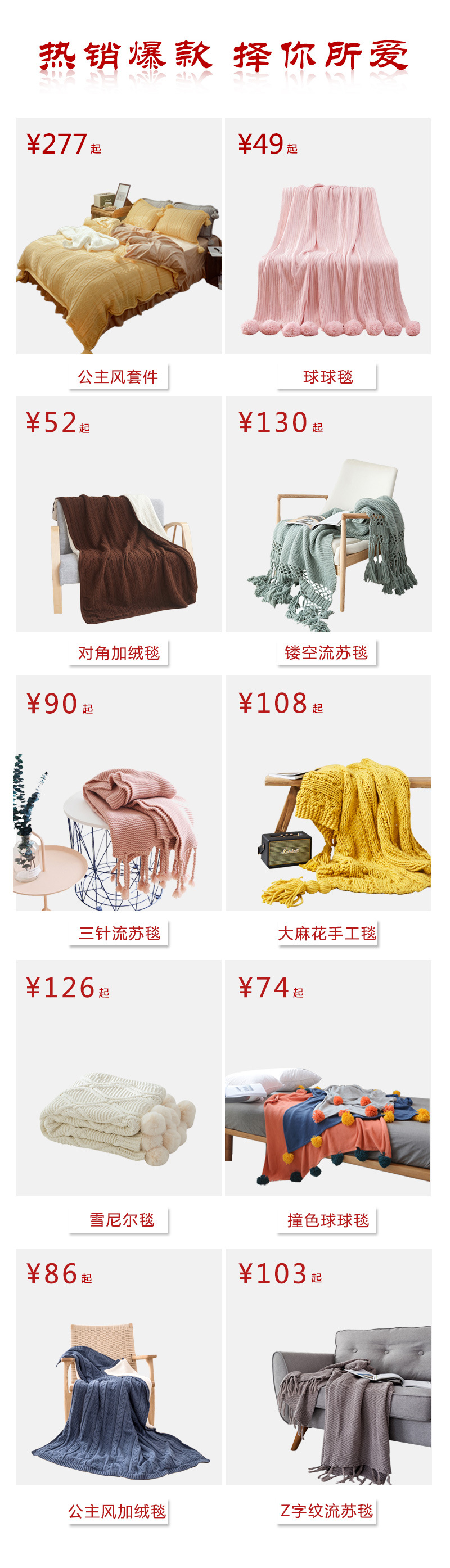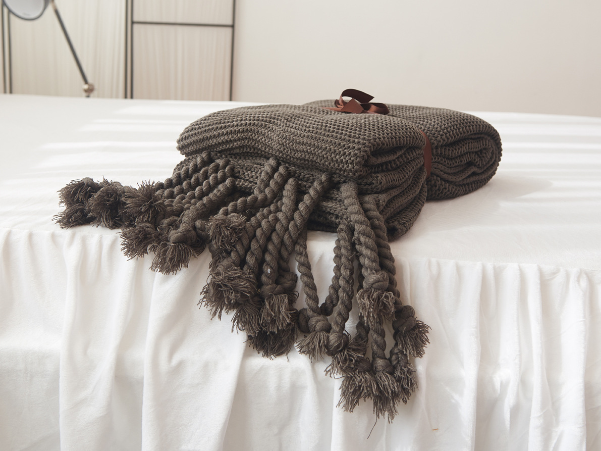 宜家风格流苏线毯,两头采用人工搓须麻花辫流苏,大气不失精致。是家居搭毯中的姣姣者,出行放在汽车上,休憩时使用。办公室办公时,空调下披着也可以降低空调病的发生哦~~