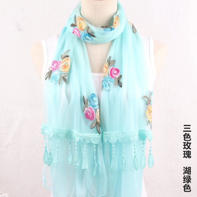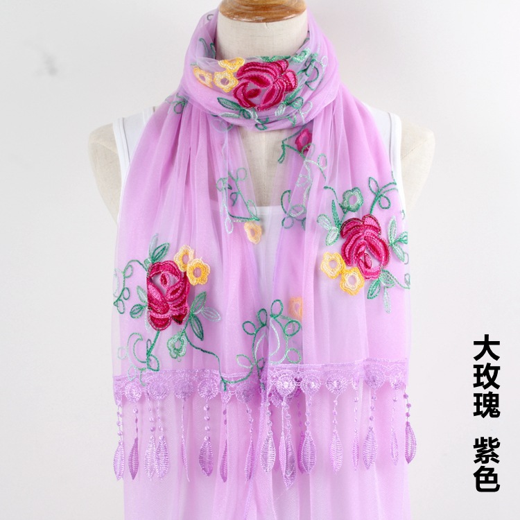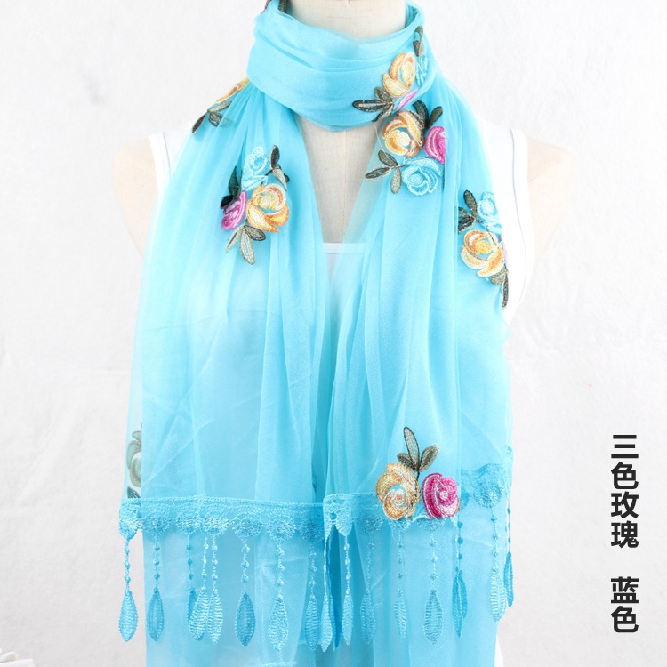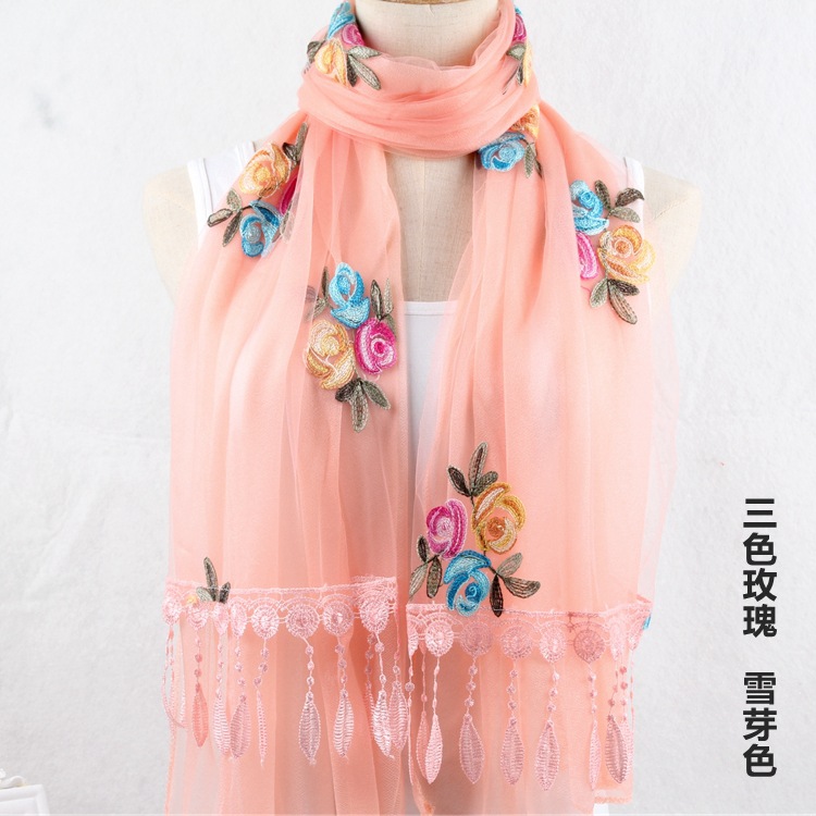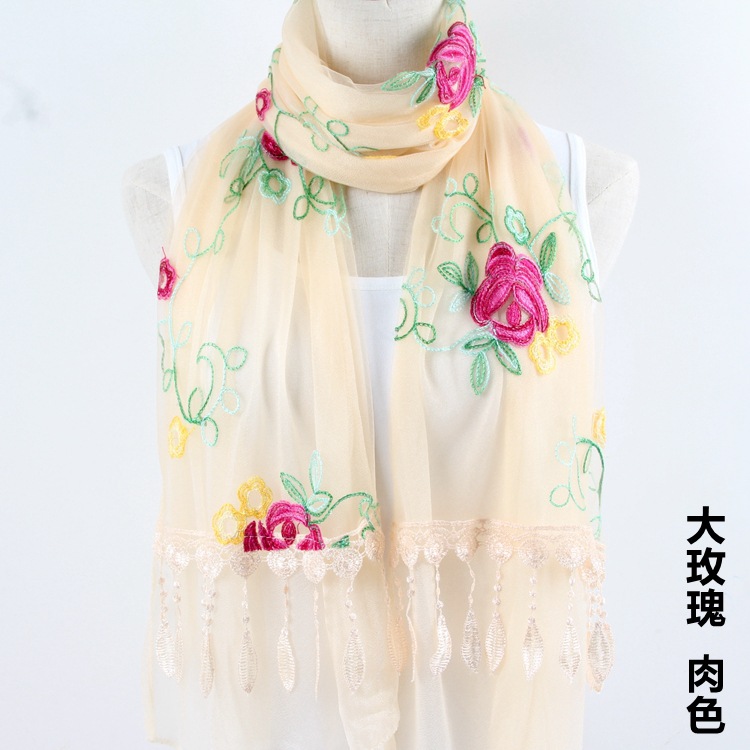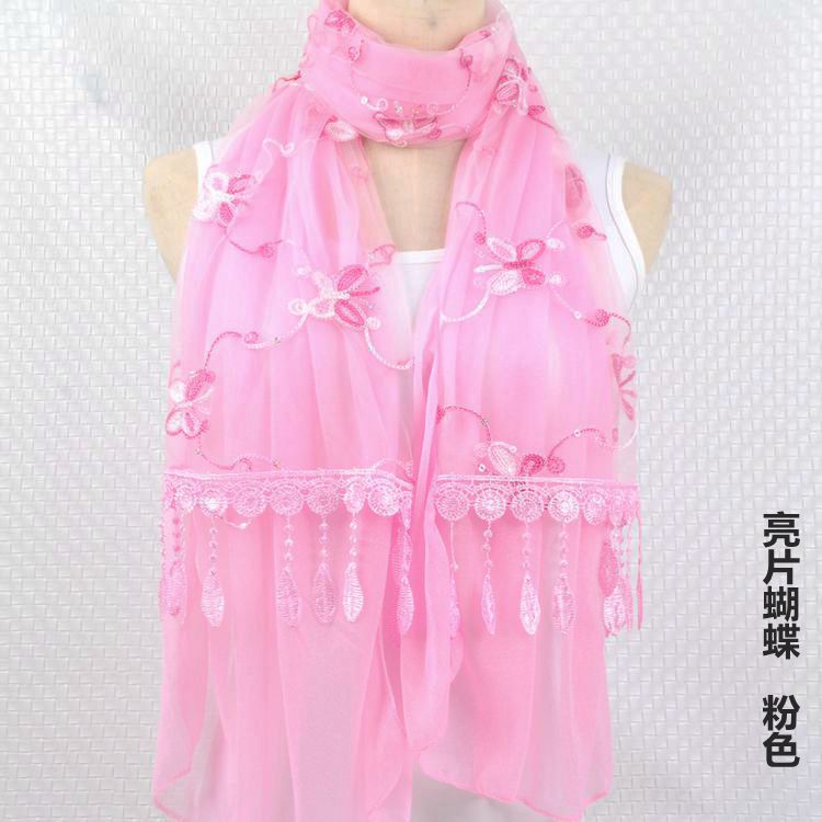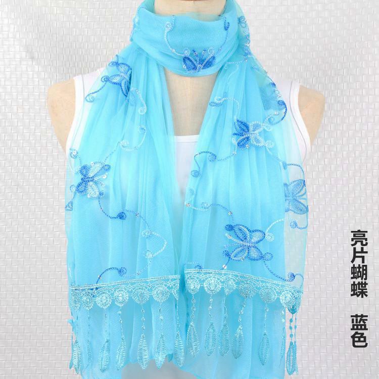 2021 가을과 겨울 새로운 컴퓨터 자수 더블 레이어 스카프 여성용 긴 스팽글 스카프 레이스 술 실크 스카프