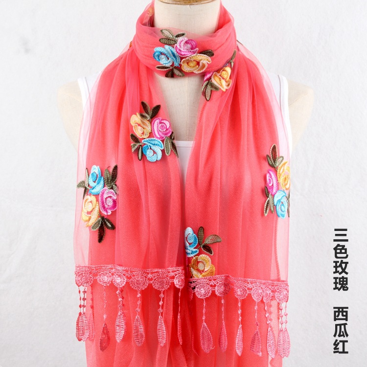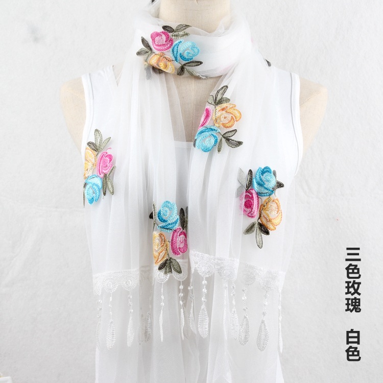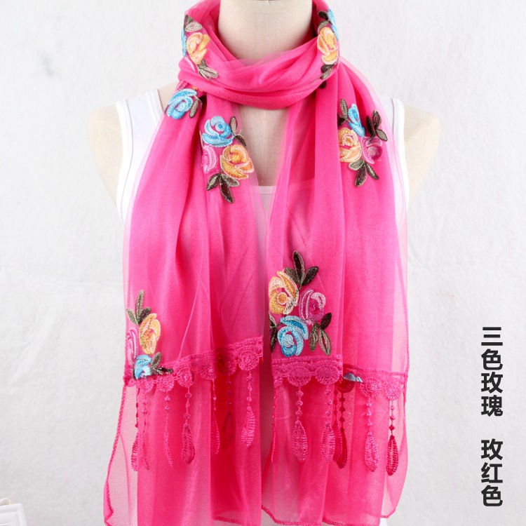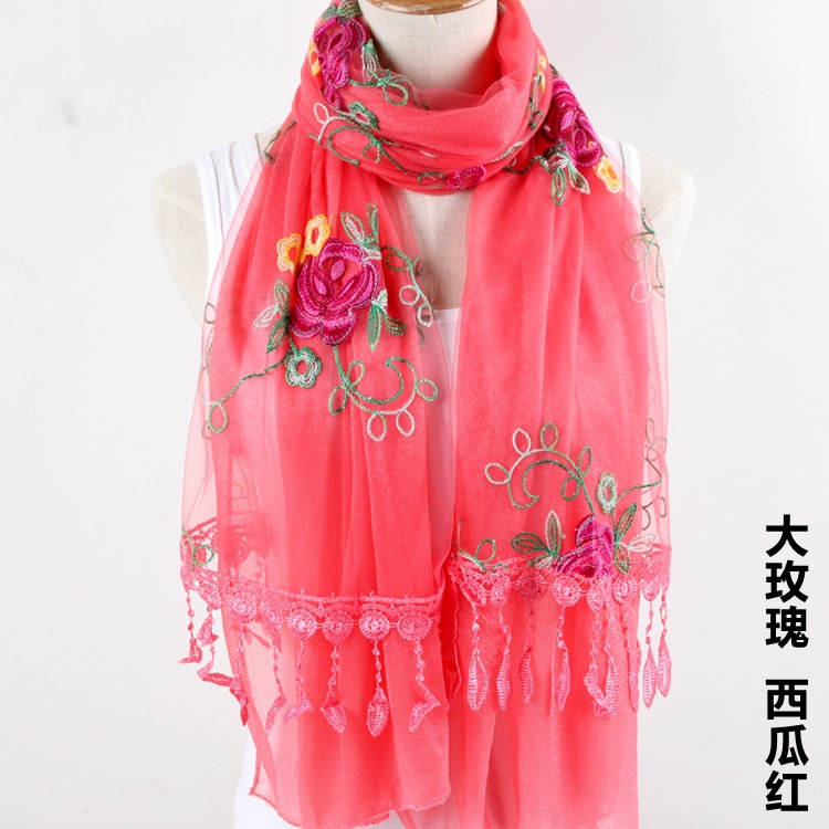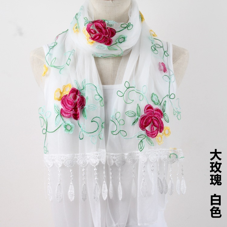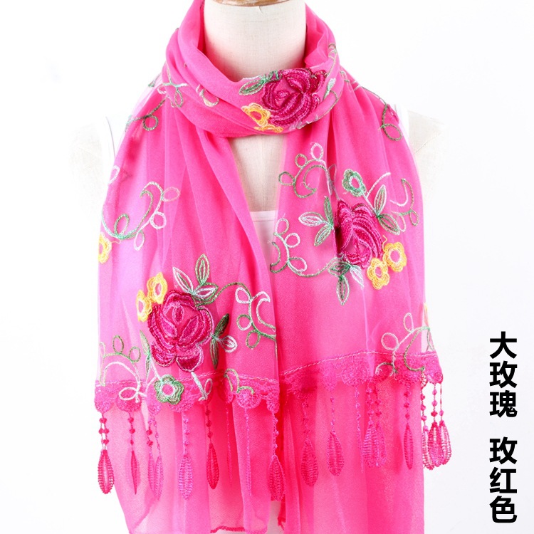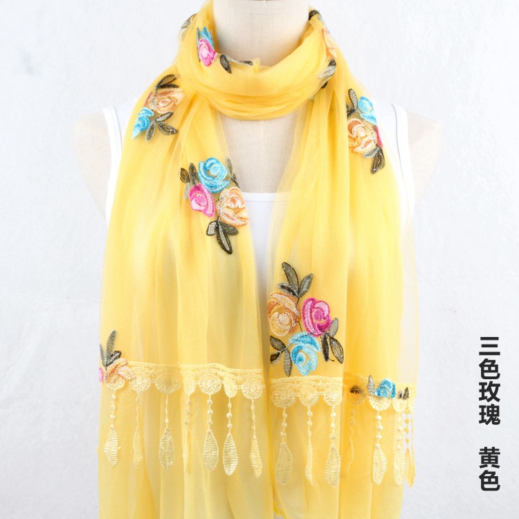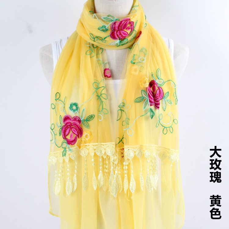 2021 가을과 겨울 새로운 컴퓨터 자수 더블 레이어 스카프 여성용 긴 스팽글 스카프 레이스 술 실크 스카프