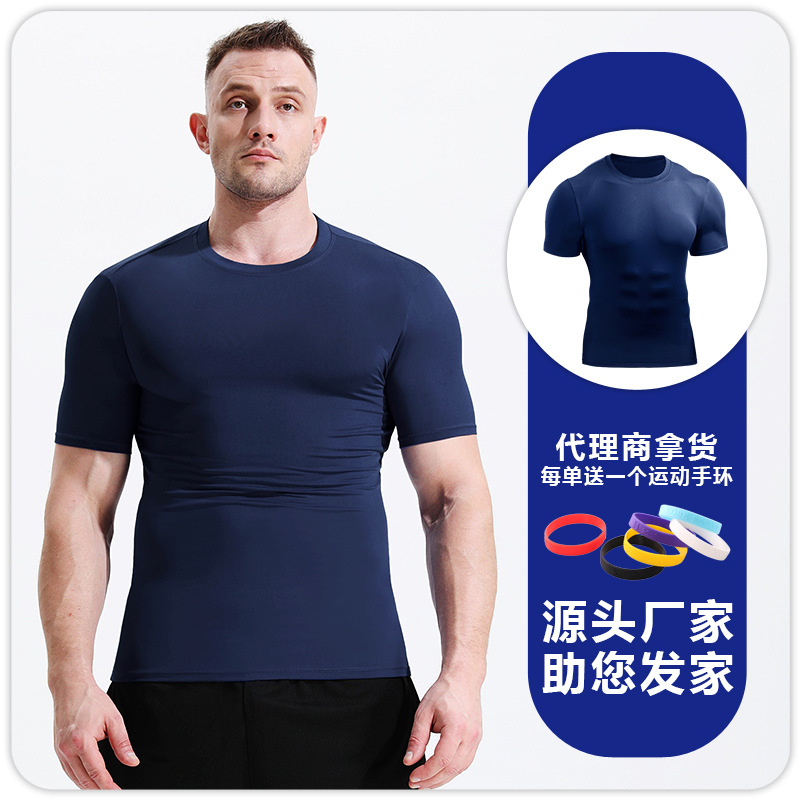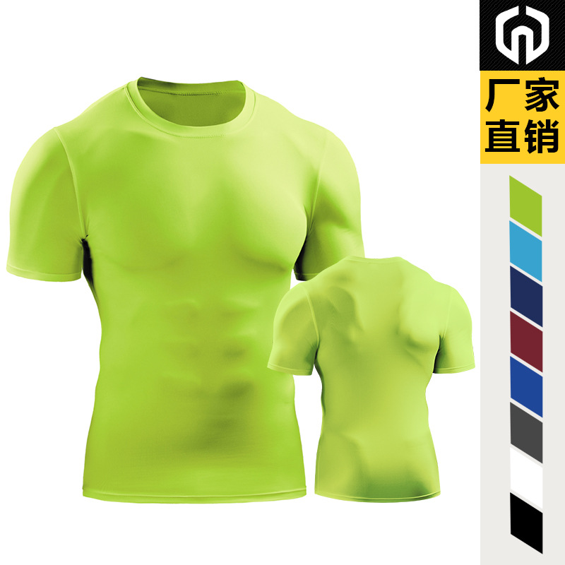 반팔 남성용 여름 스포츠 런닝 반팔 티셔츠 잘 생긴 라운드 넥 타이트 티셔츠 속건 통기성 땀을 흘리는 농구 탑스토어 가기