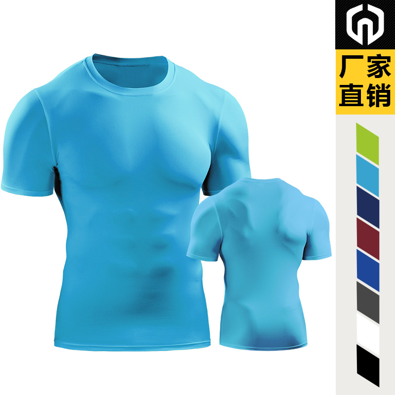 반팔 남성용 여름 스포츠 런닝 반팔 티셔츠 잘 생긴 라운드 넥 타이트 티셔츠 속건 통기성 땀을 흘리는 농구 탑