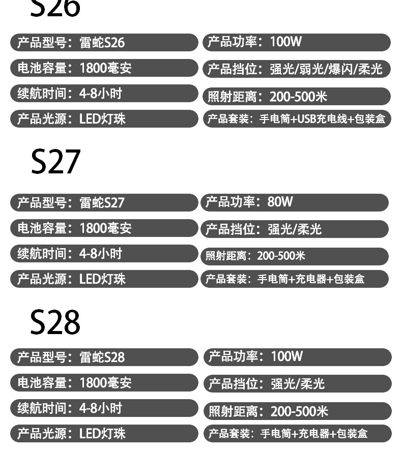 • S28-100W [손전등 충전기 흡입 카드 포장]]