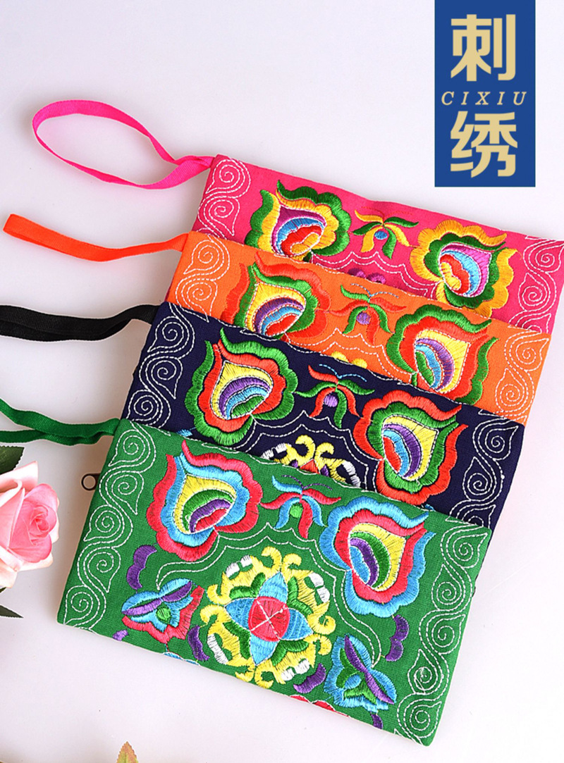 윈난 에스닉 스타일 자수 동전 지갑 큰 모란 꽃 여성용 천 가방 핸드백 외국인을위한 외국 선물