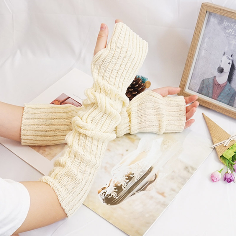 Yifan 가을과 겨울 야외 따뜻한 장식 한국 단색 패션 플랫 바늘 손가락 구멍 소매 니트 탄성 팔 커버스토어 가기