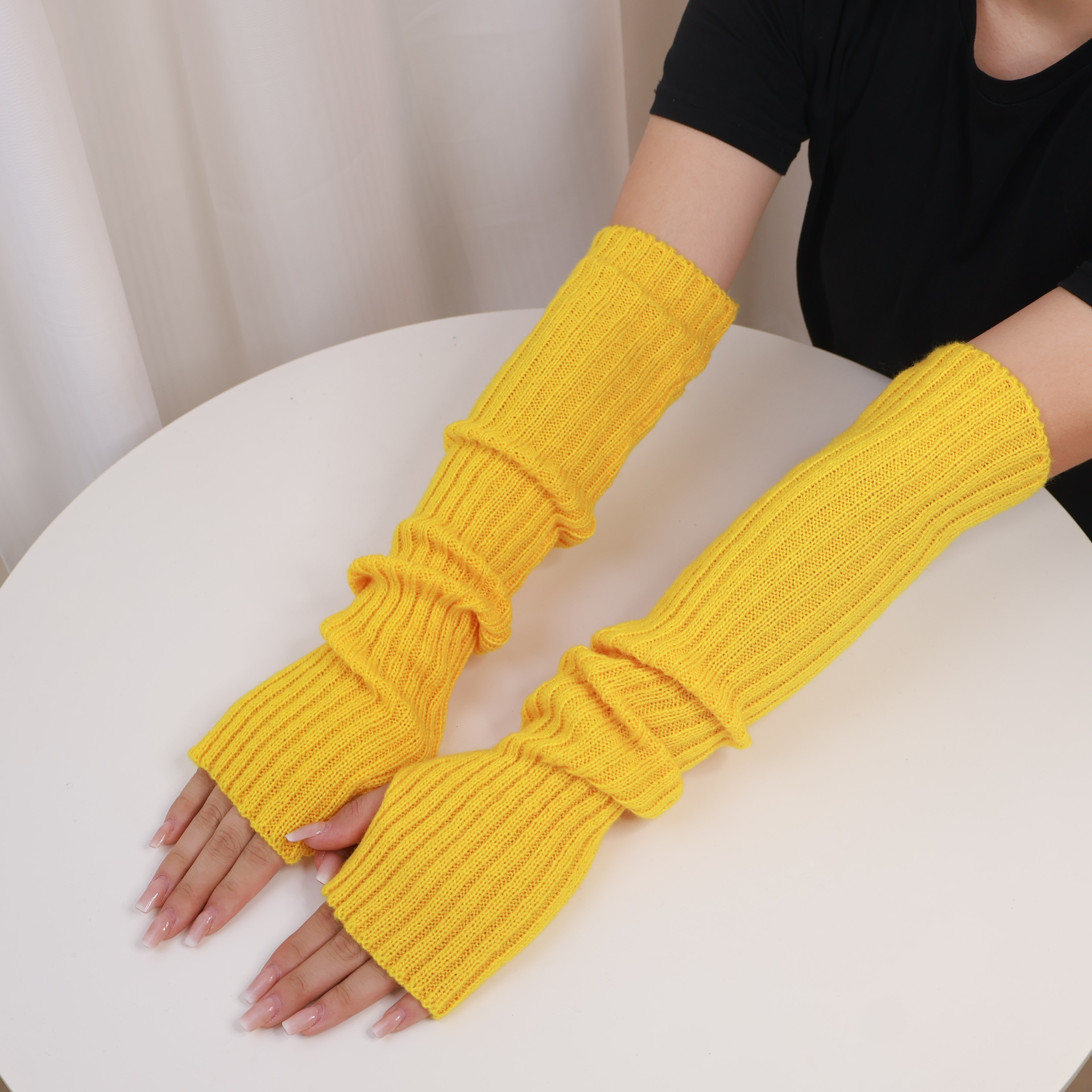 Yifan 가을과 겨울 야외 따뜻한 장식 한국 단색 패션 플랫 바늘 손가락 구멍 소매 니트 탄성 팔 커버