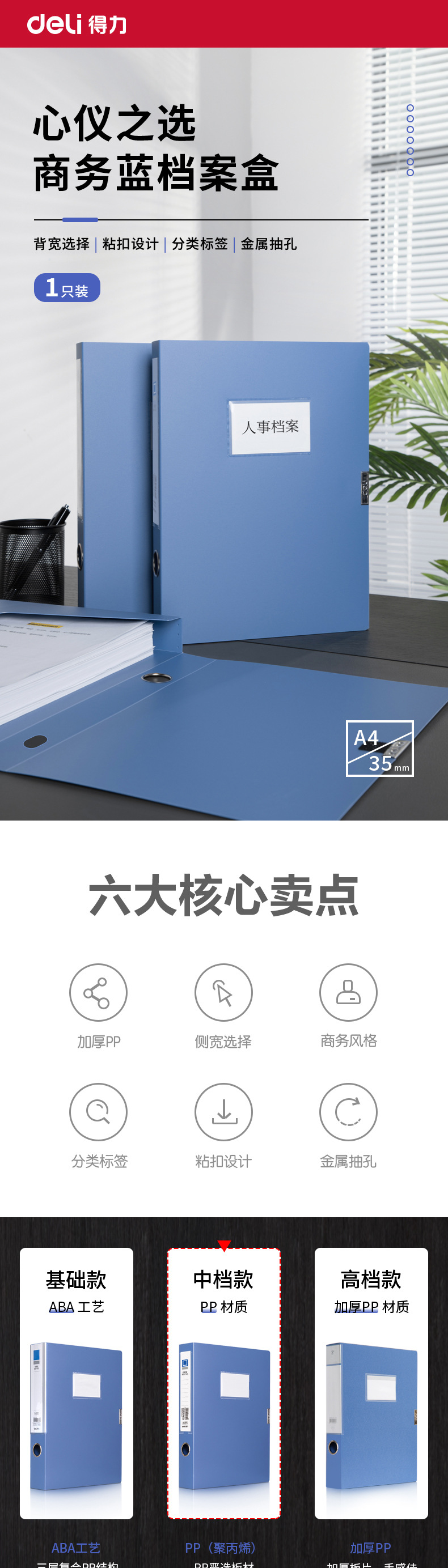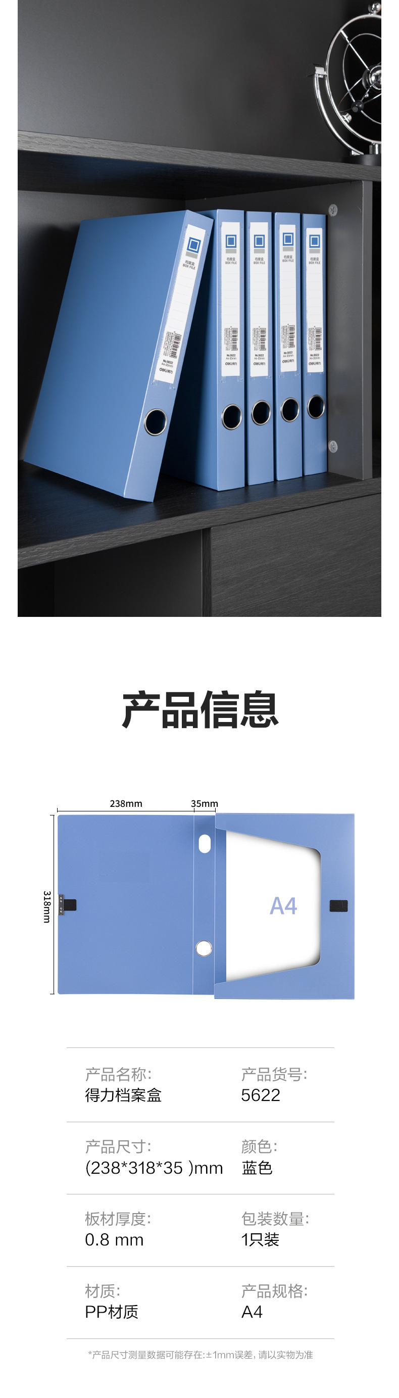델리 5622 블루 파일 박스 데이터 스토리지 박스 35mm 비즈니스 사무용품스토어 가기