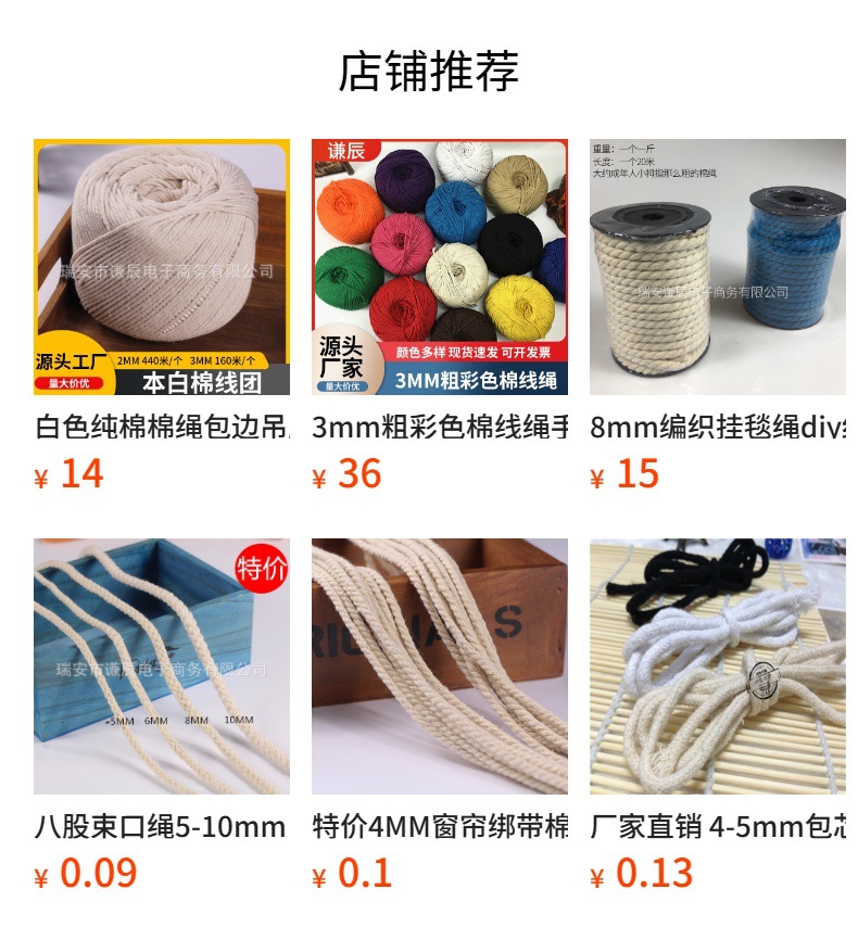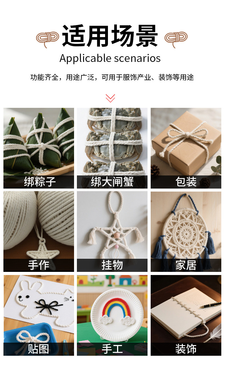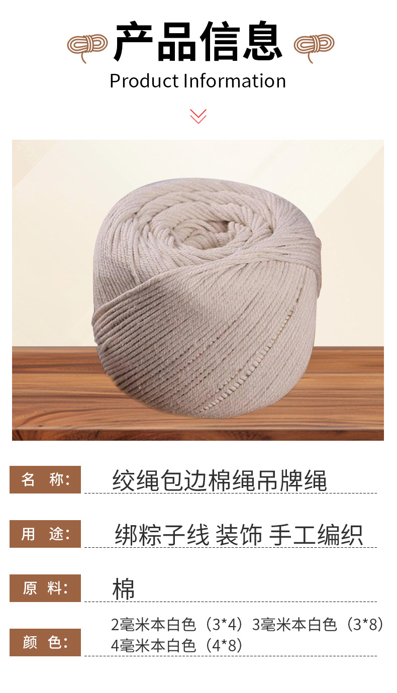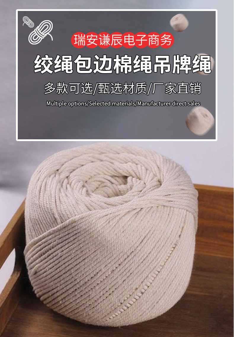 흰색 순면 끈, 가장자리 끈, 태그 끈, 2mm 3mm 대闸게 묶는 끈, 섬유 부자재, 면사, 도매스토어 가기