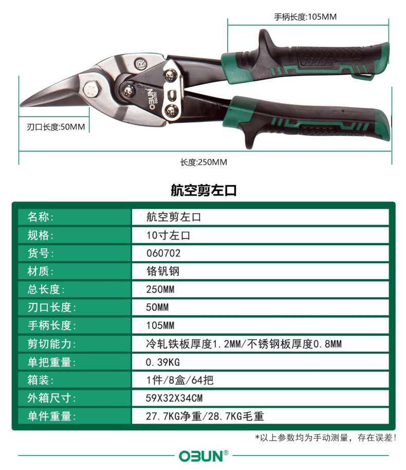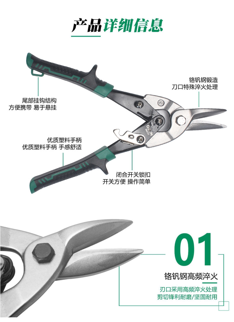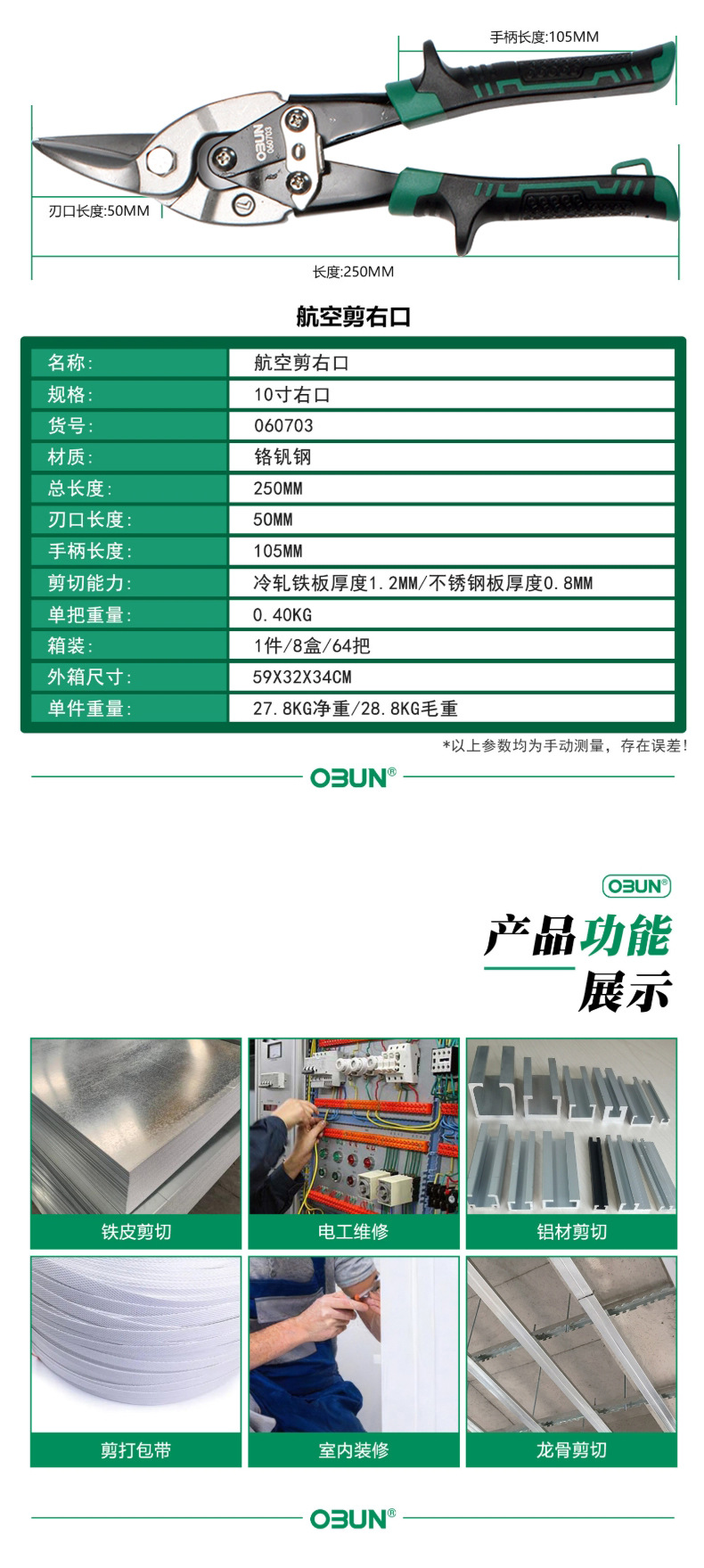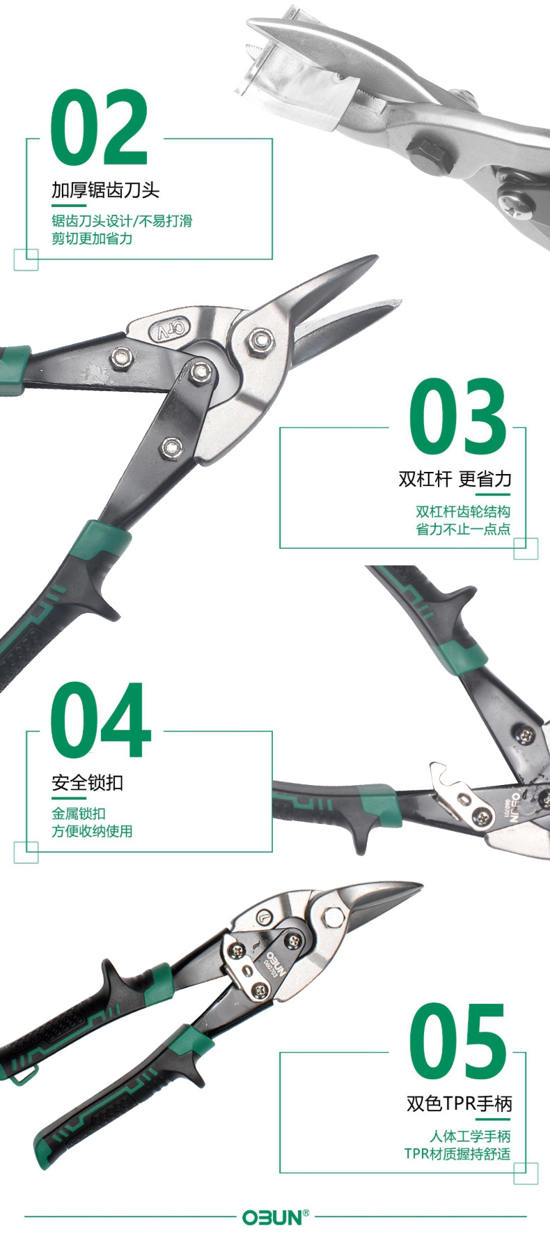 Oubang 도구 항공 가위 10 인치 직선 흰색 철판 스테인레스 스틸 수동 용골 왼쪽 오른쪽 곡선 항공 가위스토어 가기