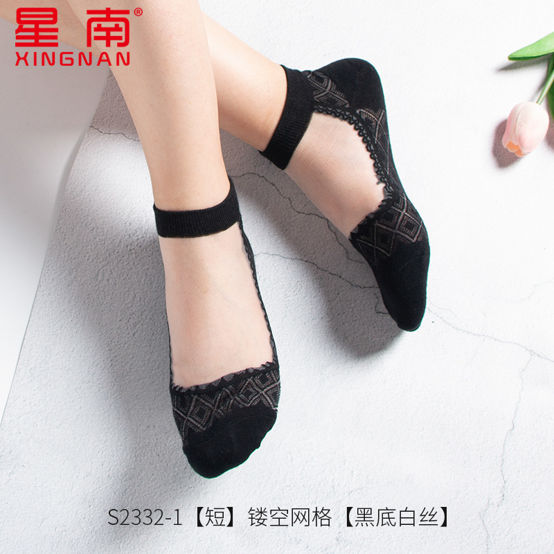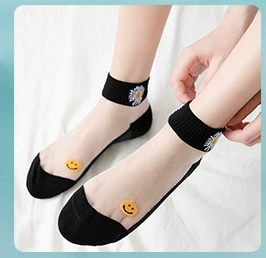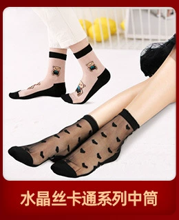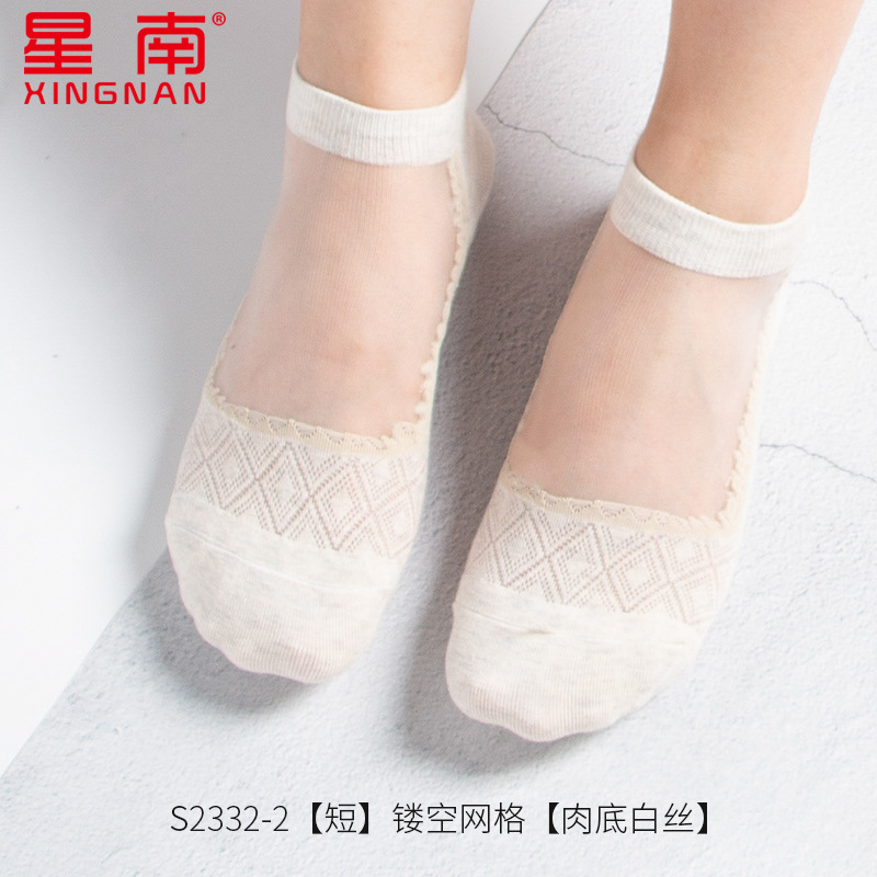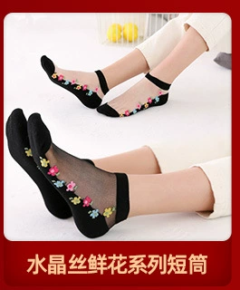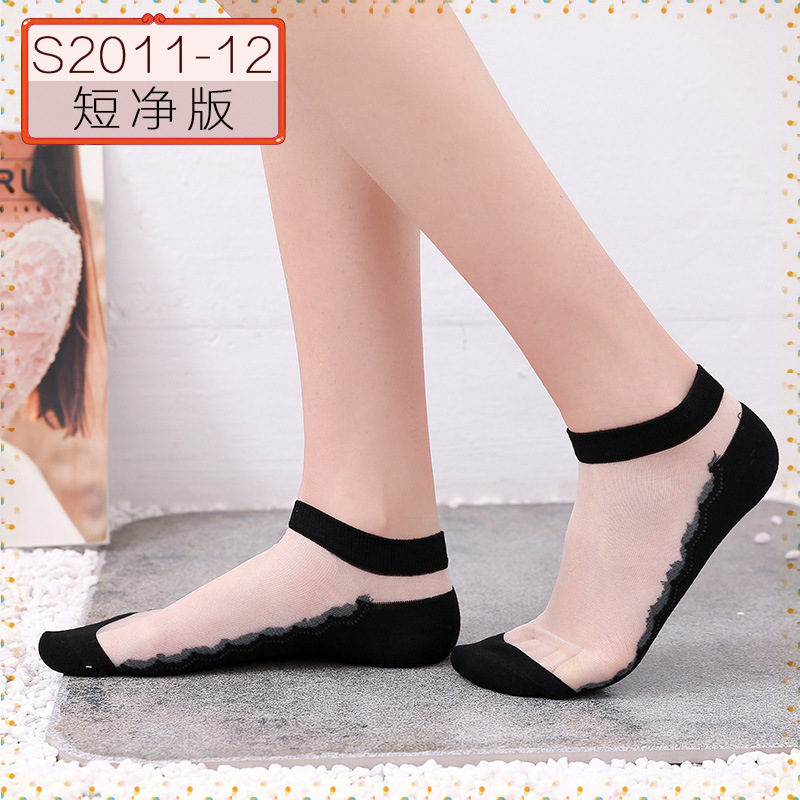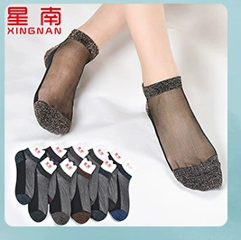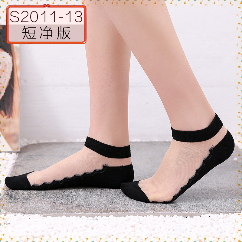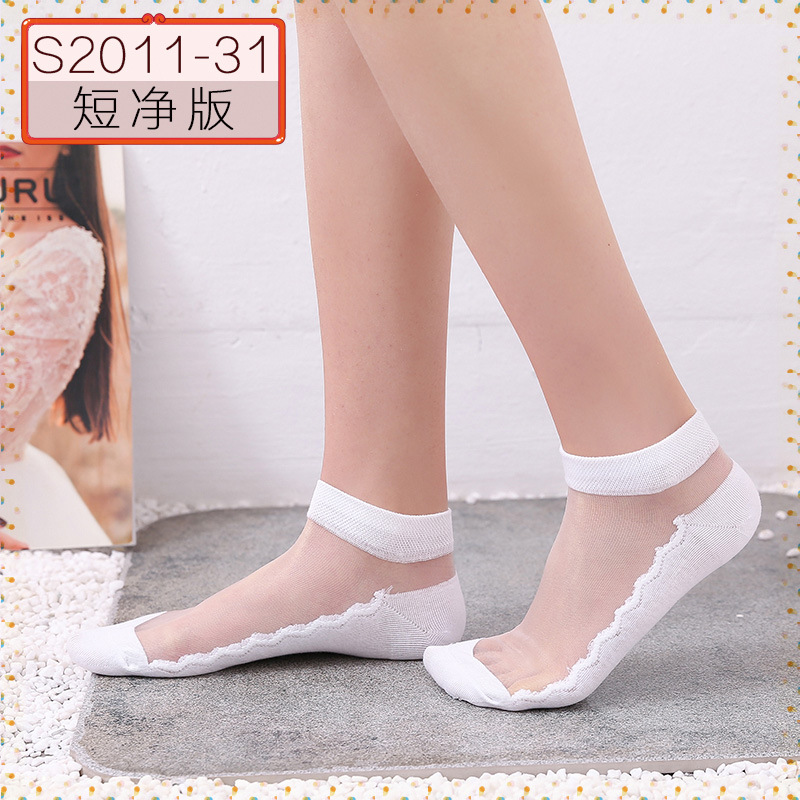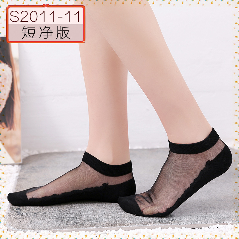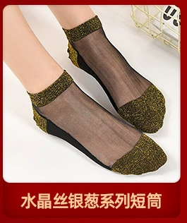 싱난 여름 얇은 섹시 크리스탈 실크 스타킹 여성용 짧은 튜브 단색 유리 실크 스타킹 면 바닥 땀 흡수 방지 걸림 실크스토어 가기