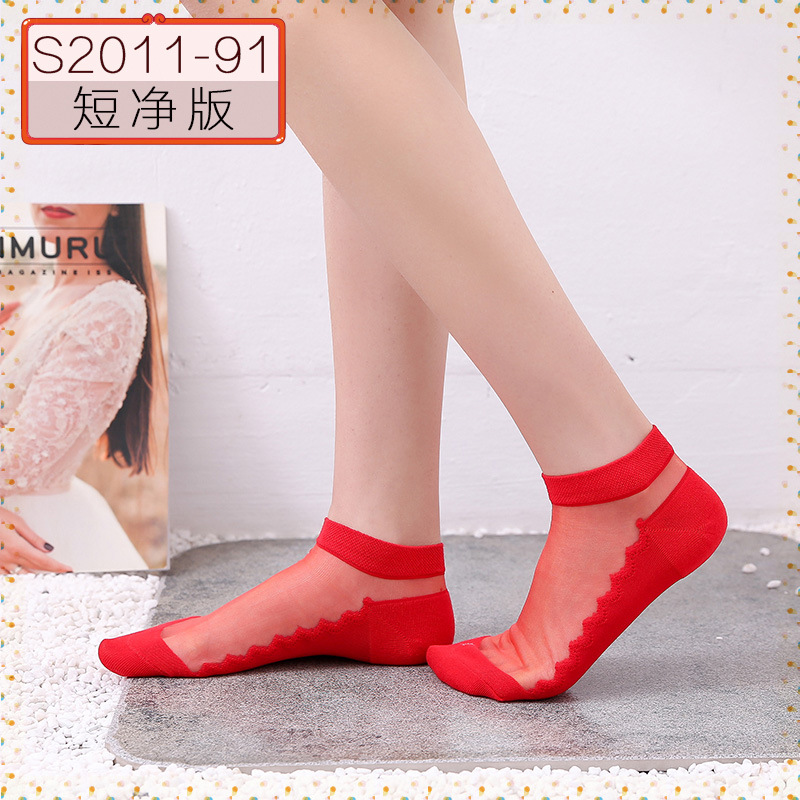 싱난 여름 얇은 섹시 크리스탈 실크 스타킹 여성용 짧은 튜브 단색 유리 실크 스타킹 면 바닥 땀 흡수 방지 걸림 실크