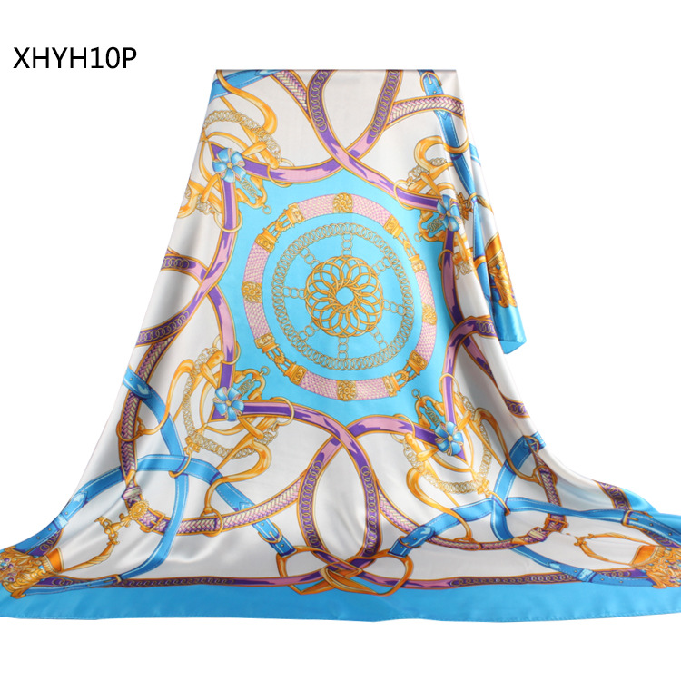 2023 재고 90*90cm 디지털 인쇄 선 스크린 스카프 스퀘어 비치 타월 제조 업체 도매 폴리 에스테르 실크 스카프