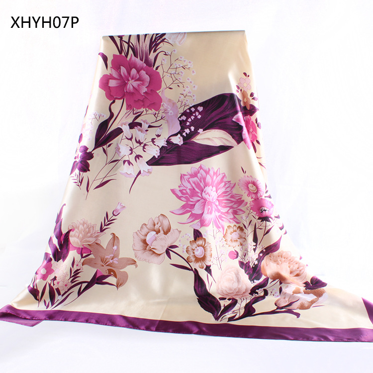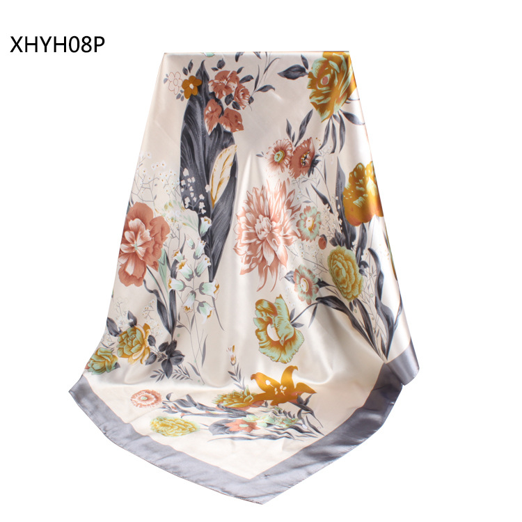 2023 재고 90*90cm 디지털 인쇄 선 스크린 스카프 스퀘어 비치 타월 제조 업체 도매 폴리 에스테르 실크 스카프스토어 가기