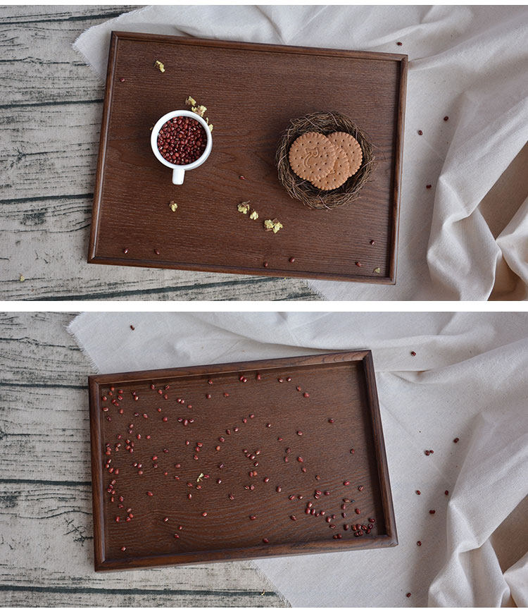 일본 직사각형 티 트레이 나무 트레이 다크 브라운 트레이 나무 호텔 트레이 디너 트레이 티 컵 트레이스토어 가기