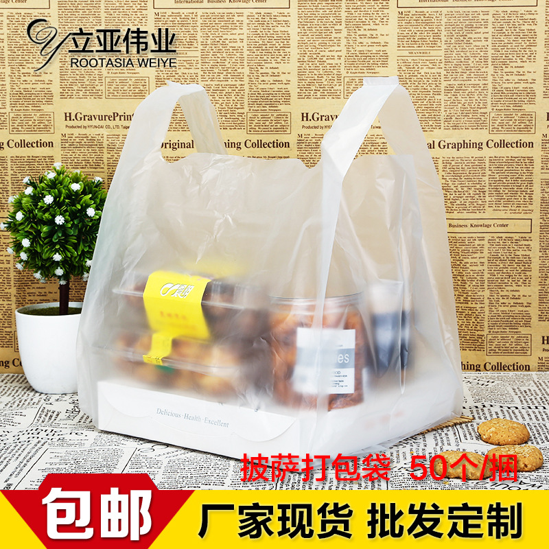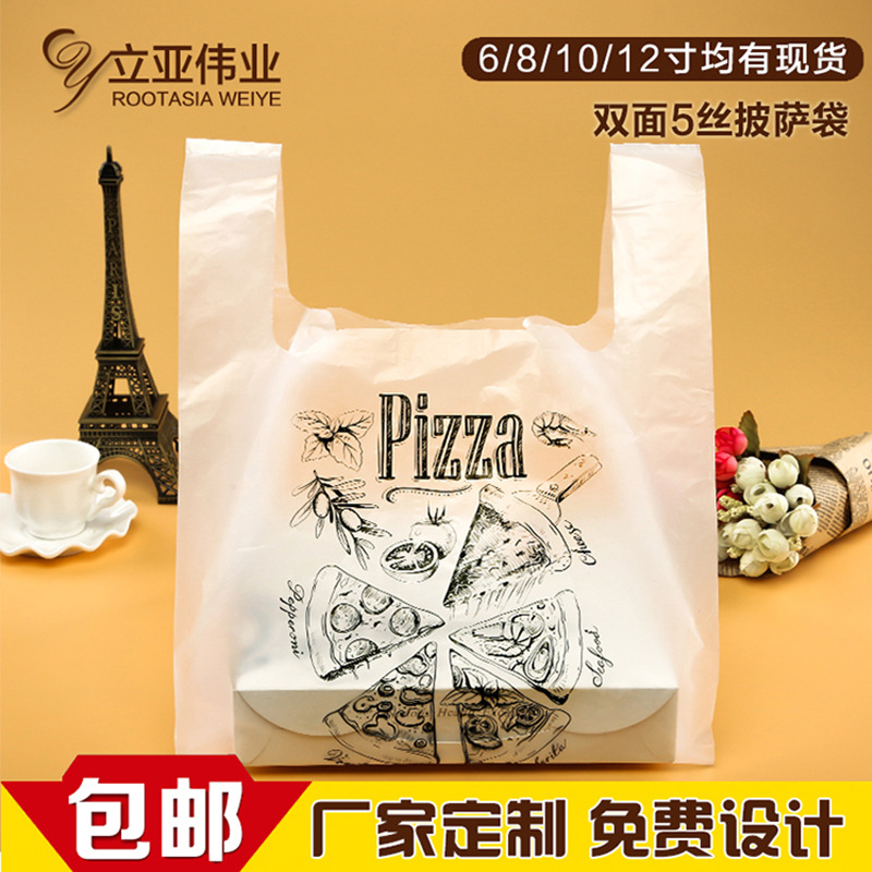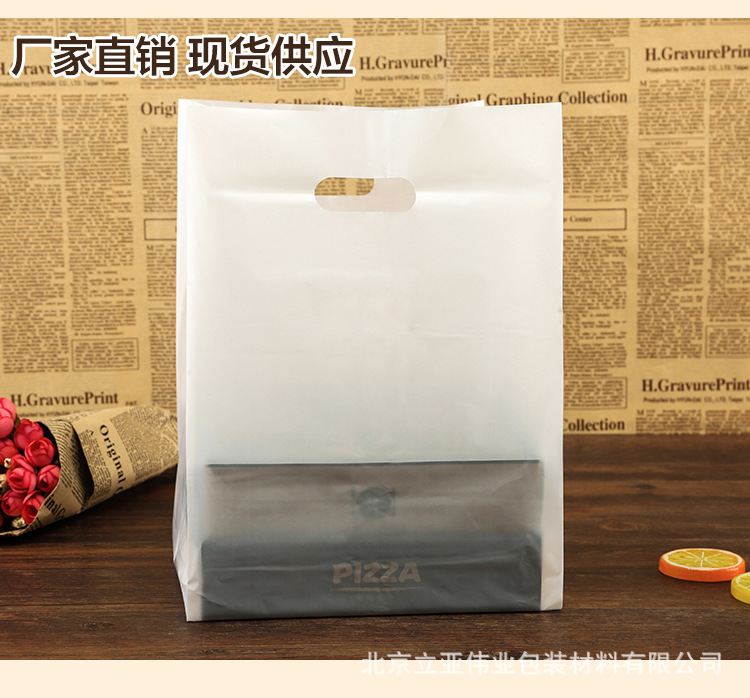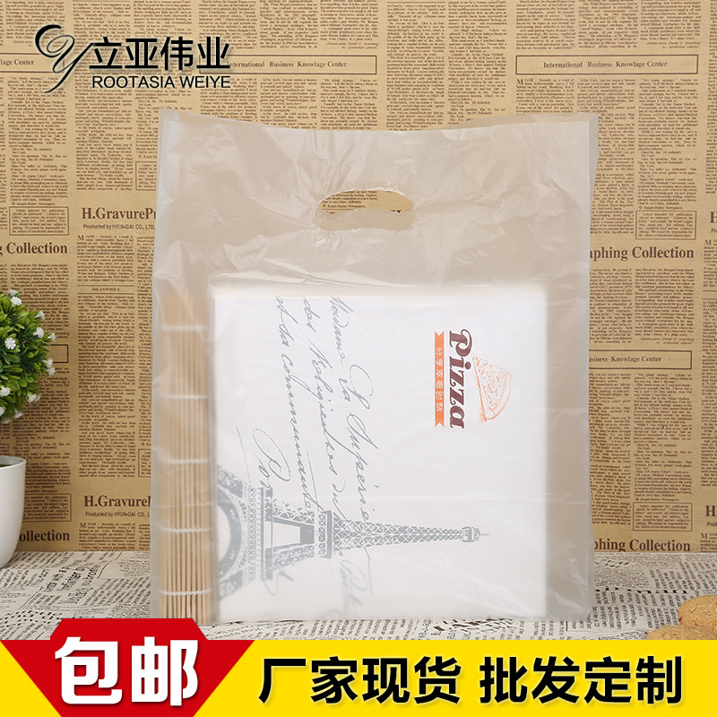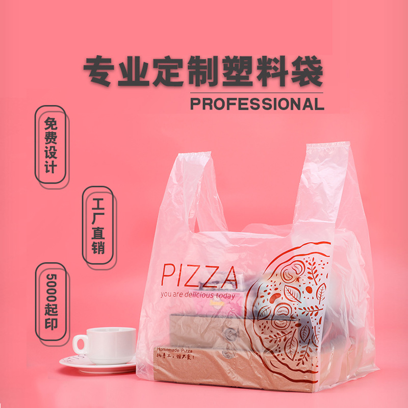 专业定制各种尺寸扣手袋、背心袋、餐饮打包袋、披萨袋、烘焙糕点袋,5000个起订,由于是定制品,袋子的厚度不同、尺寸不同、印刷不同,袋子的价格均有浮动,详细价格请联系客服详谈!