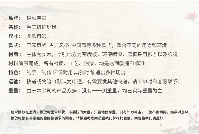 1.亲,此款屏风是折叠式屏风,需要曲折放置,1-2扇站不稳,好适宜4扇,如情况特殊可购买屏风底座,请各位亲拍前咨询客服哦