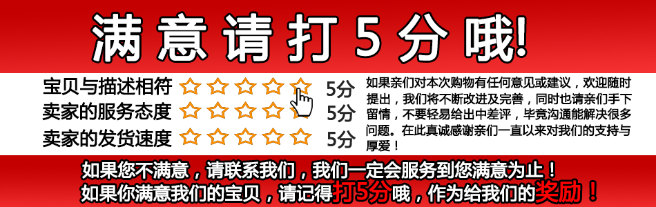 亲,收到货后,请别忘了收藏小店噢,并给个好评+店铺满分的评价哦,客户之上,您的满意我们的追求。