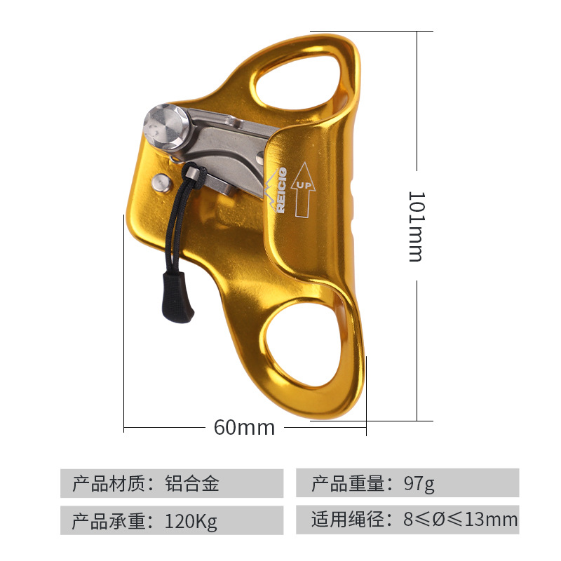 레이세오 고공 등반용 가슴형 상승기, 복부형 상승기, 로프 등반기, 안전벨트, 동굴 탐험 장비