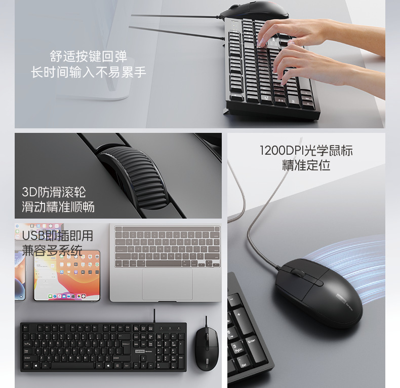도매 lenovo USB 유선 키보드 마우스 세트 사무용 올인원 데스크탑 노트북 키보드스토어 가기