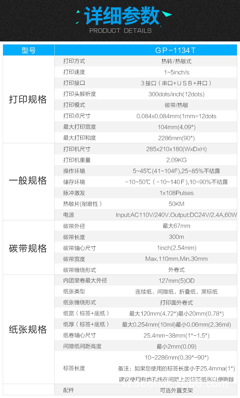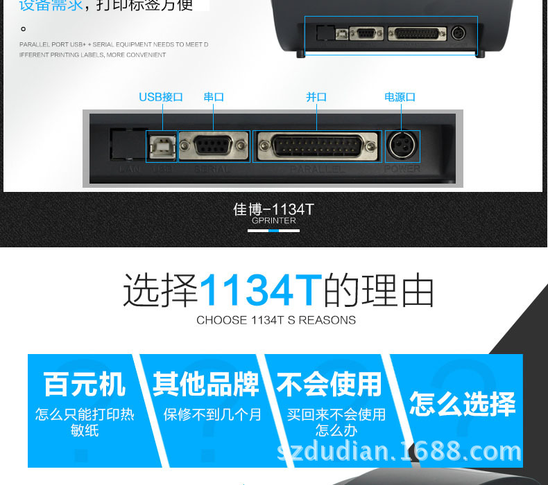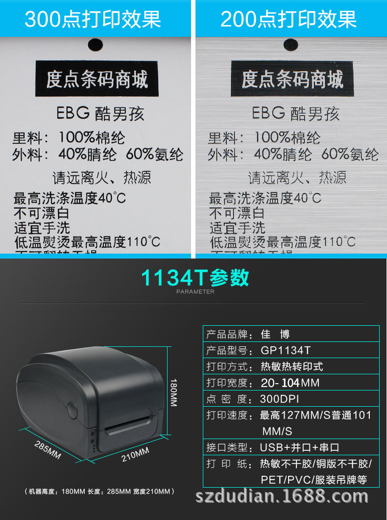Jiabo GP1134T 바코드 프린터 300dpi 우편 메일 아마존 단일 라벨 프린터