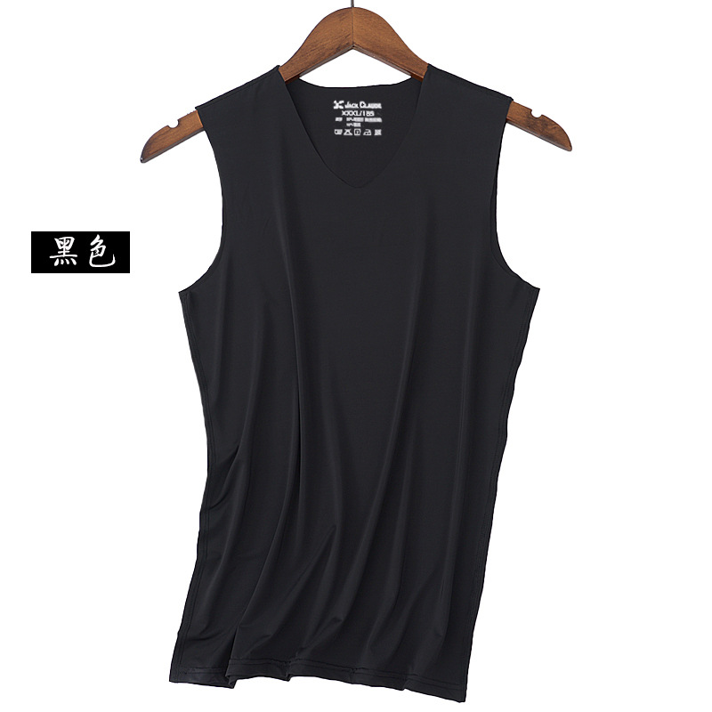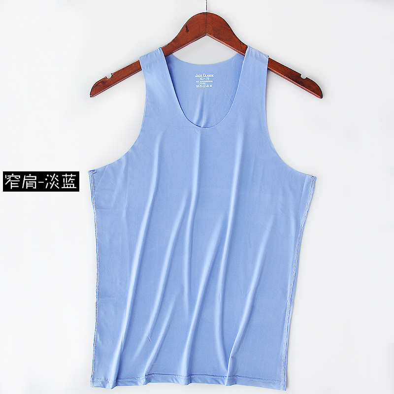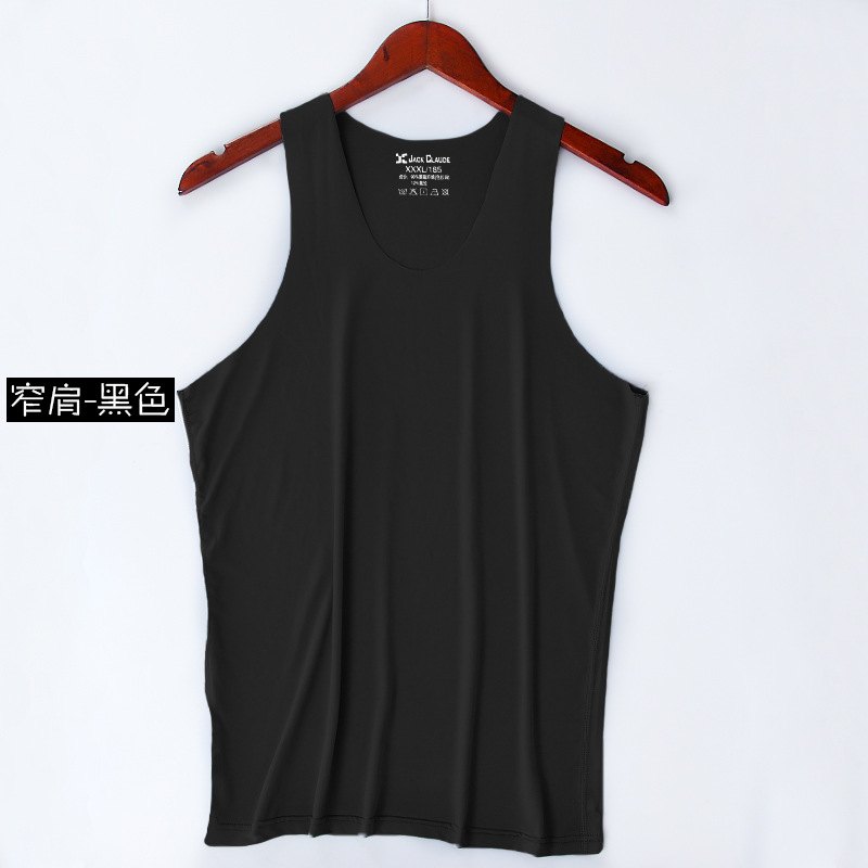남자의 추적없는 아이스 실크 조끼 남자의 여름 얇은 통기성 스트레치 타이트 와이드 숄더 청소년 학생 운동복 허들 화이트스토어 가기
