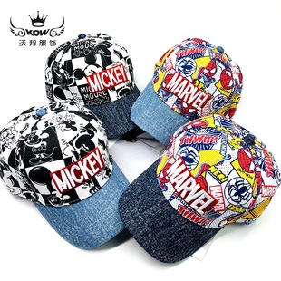 어린이 모자 도매 봄과 가을 새로운 소년 모자 유럽과 미국의 만화 자수 거미 남자 어린이 야구 모자스토어 가기