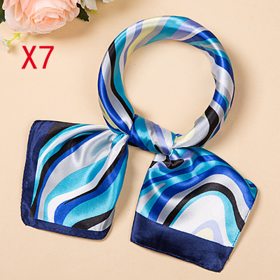 这款中方巾60*60cm左右比一般的50*50cm左右小方巾尺寸大许多,所以在系法上更具多样性,此外中方巾是卷边工艺,耐用,做工好,比小方巾更厚实。