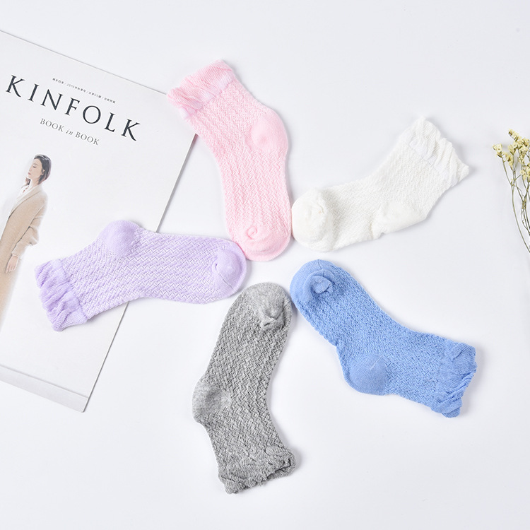 봄 면화 달콤한 소년과 소녀는 느슨한 양말을 교살하지 않습니다 면 단색 거품 가장자리 아기 양말 도매스토어 가기