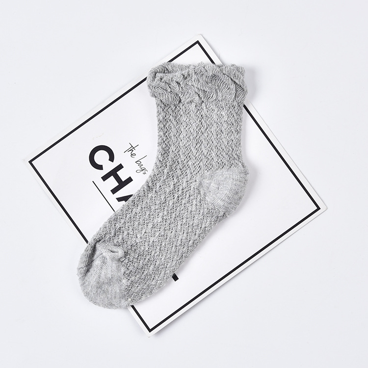봄 면화 달콤한 소년과 소녀는 느슨한 양말을 교살하지 않습니다 면 단색 거품 가장자리 아기 양말 도매