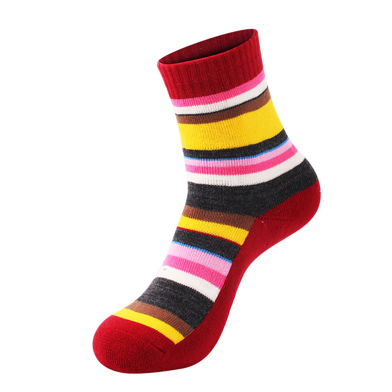 SANTO 여름 야외 양말 땀 흡수 통기성 두꺼운 등산 사이클링 여행 스포츠 양말 스트라이프 여성
