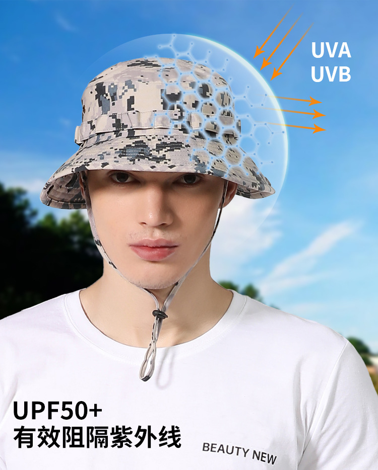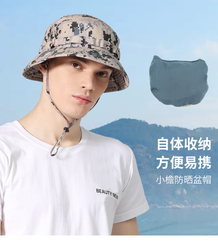 위장 등산 분지 모자 야외 남성용 큰 머리 어부 모자 태양 보호 및 보관 바이오닉 캠핑 정글 모자 크로스 보더