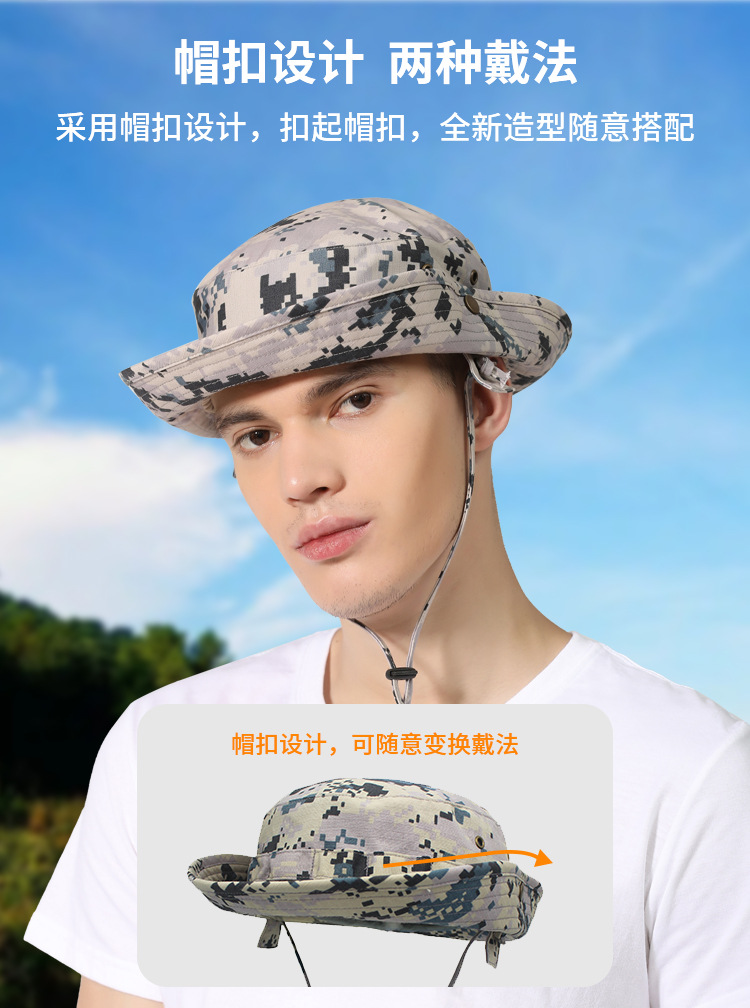 위장 등산 분지 모자 야외 남성용 큰 머리 어부 모자 태양 보호 및 보관 바이오닉 캠핑 정글 모자 크로스 보더스토어 가기