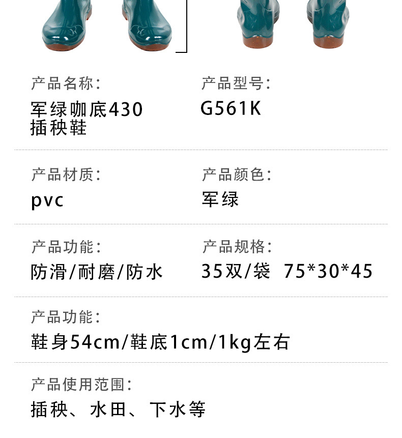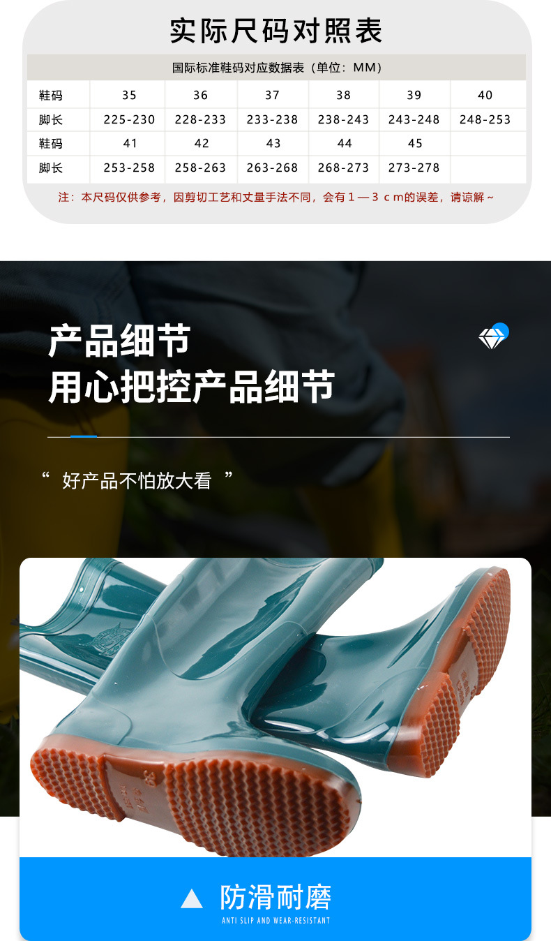 PVC 녹색 패디 필드 신발 높은 남성용 내마모성 노동 보호 이식 레인 부츠 남성 및 여성용 미끄럼 방지 방수 이식 레인 부츠스토어 가기