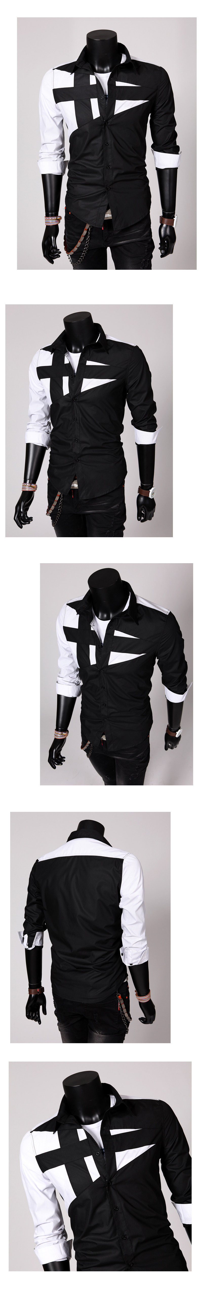 대외 무역 인기 도매 한국식 남성 트렌디 슬림 패션 맞춤형 스플라이스 긴팔 셔츠는 연중 내내 구매 가능 C01스토어 가기