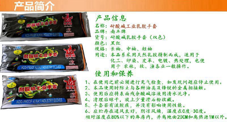 Nanfeng Nanyang 긴 소매 중간 소매 산성 및 알칼리 저항 산업용 라텍스 장갑 화학 전기 도금 보호 장갑 연장스토어 가기