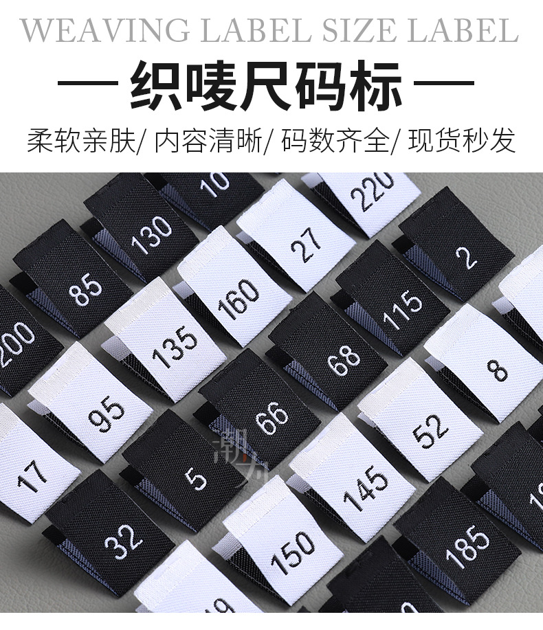 스팟 사이즈 라벨 컴퓨터 직조 라벨 클립 라벨 흑백 아동복 디지털 코드 공장 직접 판매 범용 사이즈 라벨