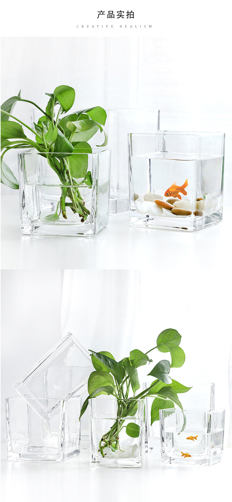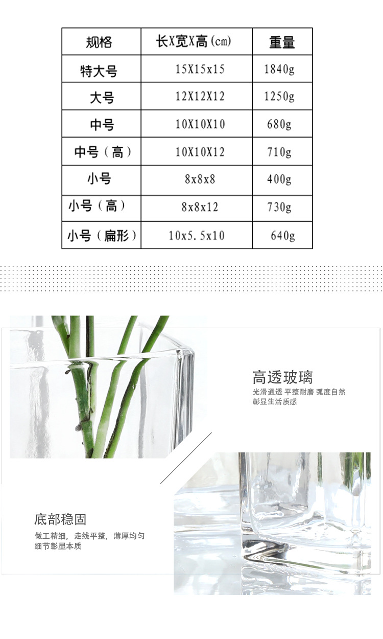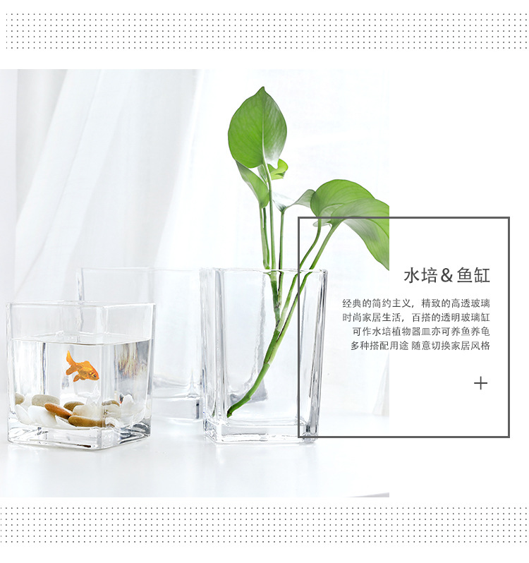 사각 크리스탈 어항 화분 다용도 사각 원통 투명 유리 화병 도매 그린 장미 수경 비전 먼 세대스토어 가기
