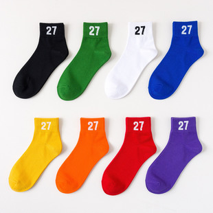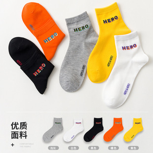 足韵2020春夏新款袜子男三成荧光色字母精梳棉运动袜中邦男袜批发 RMB:3.95