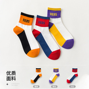 Collocation秋冬新款多色字母袜男士运动袜 纯棉袜子中邦男袜批发 RMB:3.8