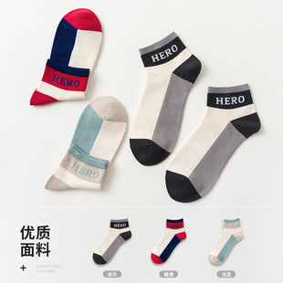 足韵日系春夏新款袜子男士拼色刺绣船袜时尚潮牌浅口袜男批发