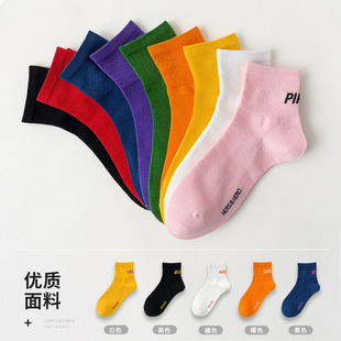 足韵2020春夏日系新款袜子女式三成荧光色字母精梳棉中邦女袜批发 RMB:3.7