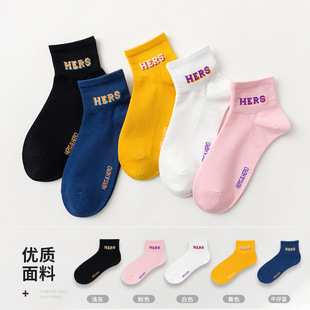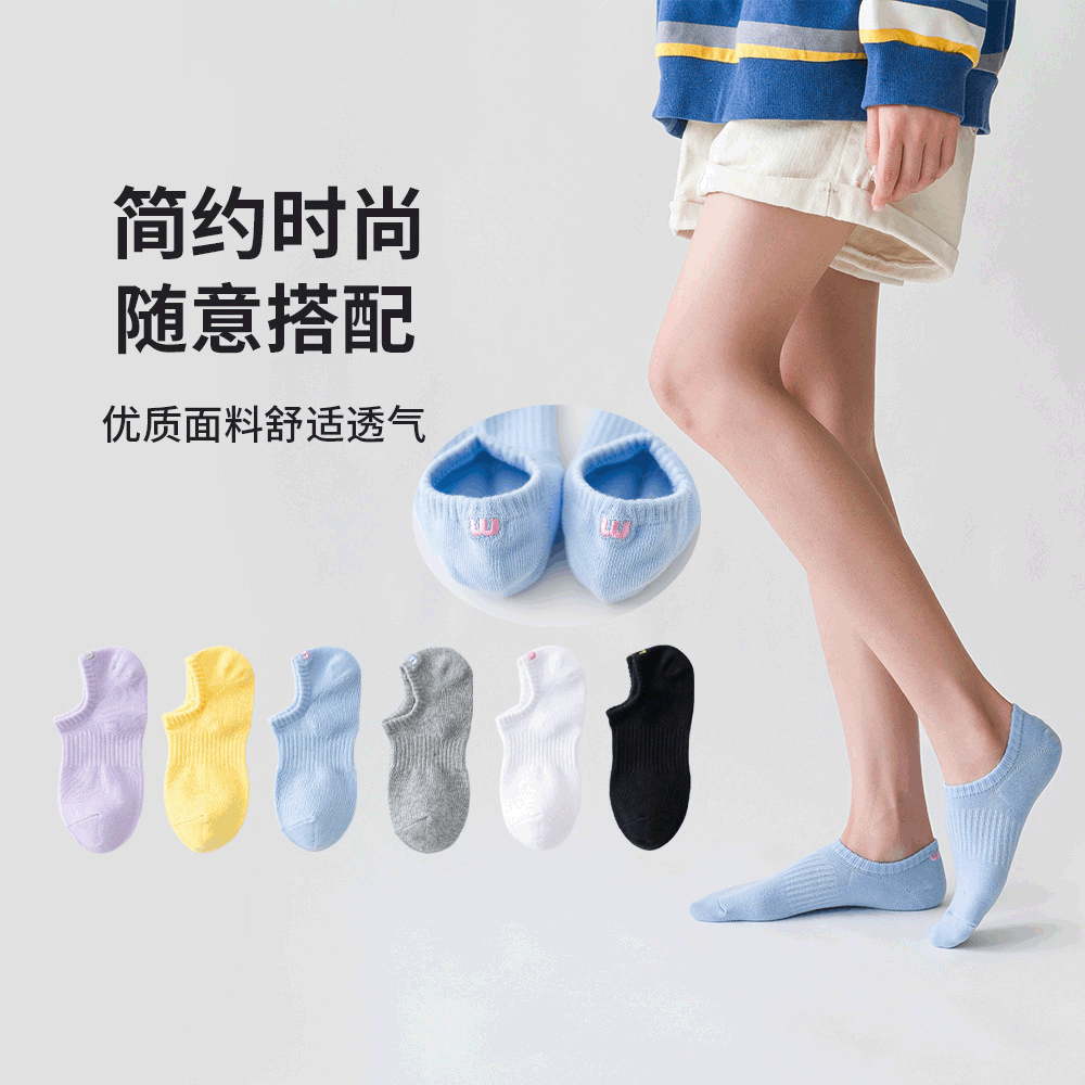 足韵春夏新款棉袜子女士字母时尚甜美船袜吸汗透气隐形浅口袜批发