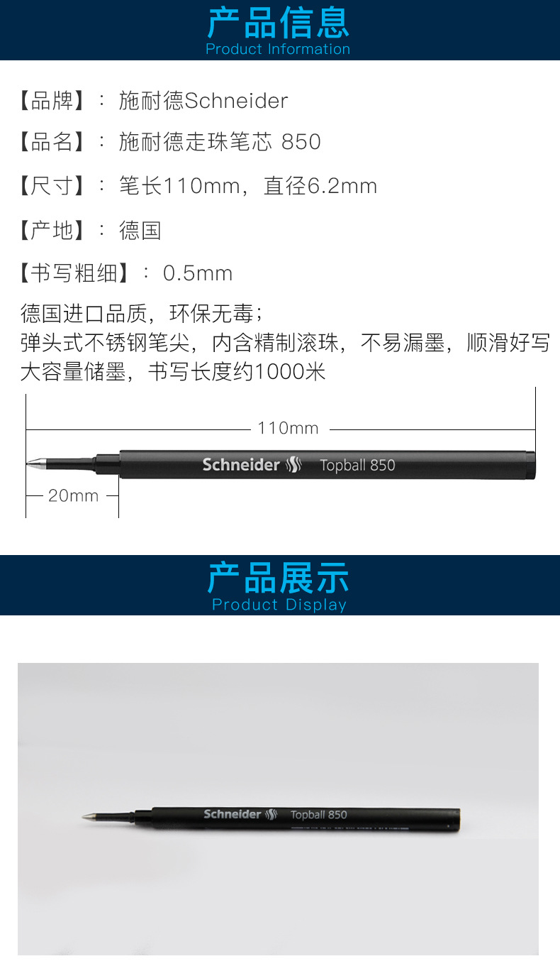 고전적인 중립 리필을위한 독일 슈나이더 슈나이더 850 중립 리필
