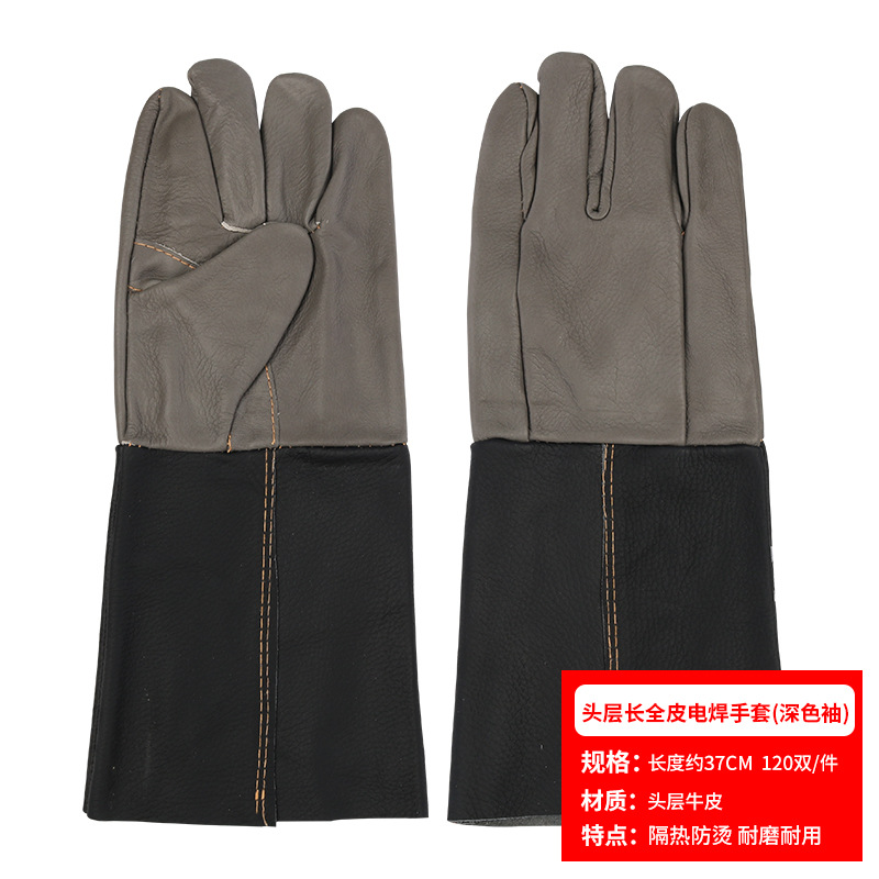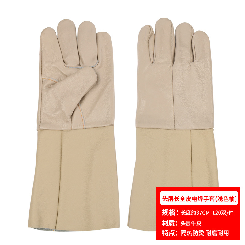 공장 도매 1 층 소가죽 긴 용접 장갑 밝은 색 어두운 용접 노동 보호 사이트 용접기 장갑